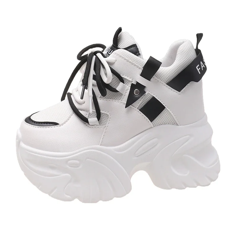 10.5CM Women Platform Sneakers Lace-up Autumn Sports Dad Shoes High Top Chunky C