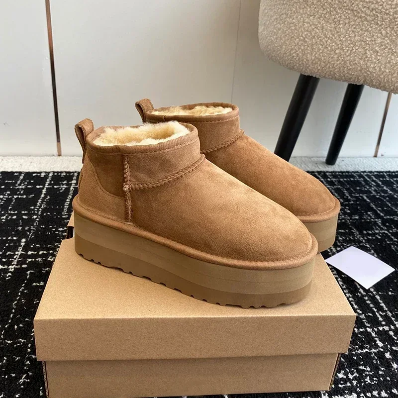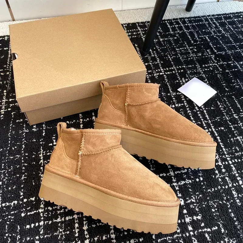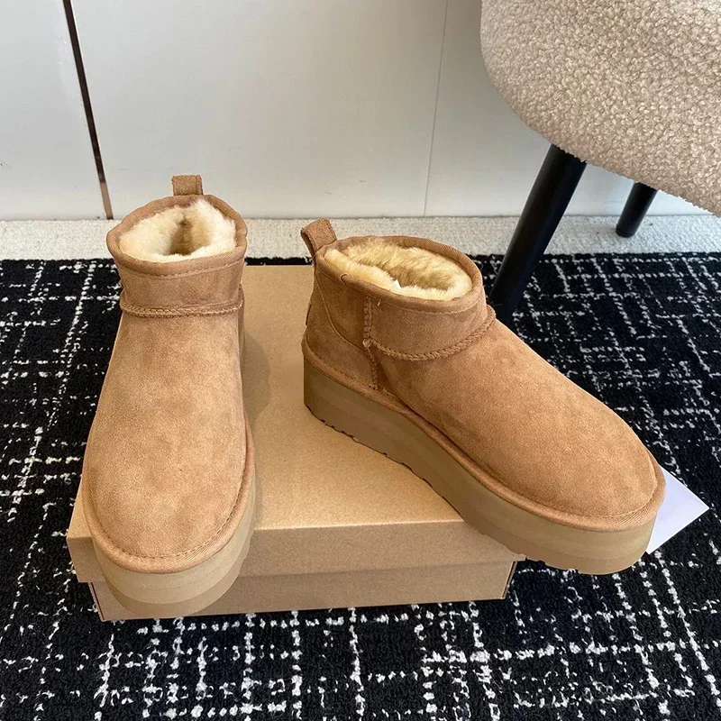 2024 Women's Snow Boots Paltform Ultra Mini Shoes Wool Women Furry Winter High