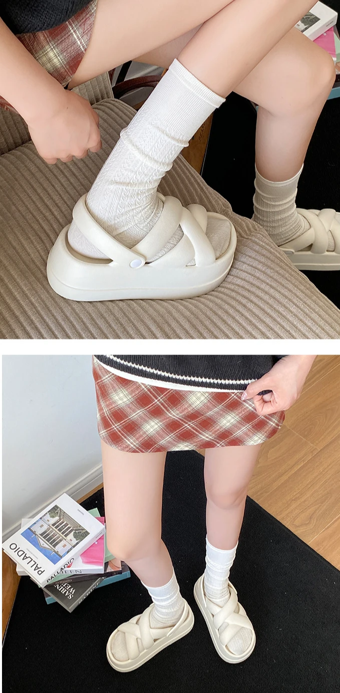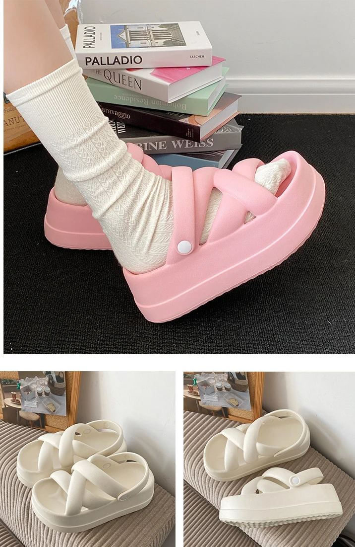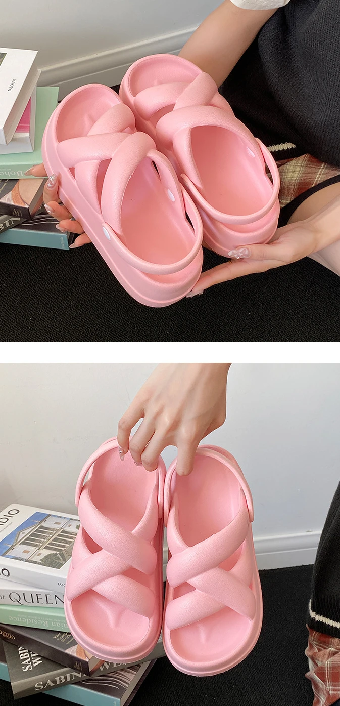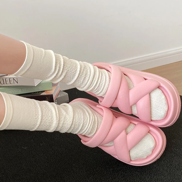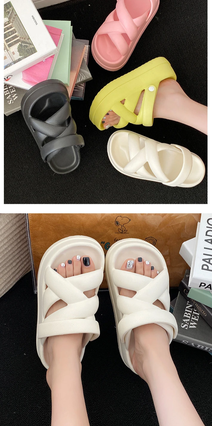 2025 New Unique Thick Soles Women's Sandals Soft-Soled Casual Crossed Ribbon Rom