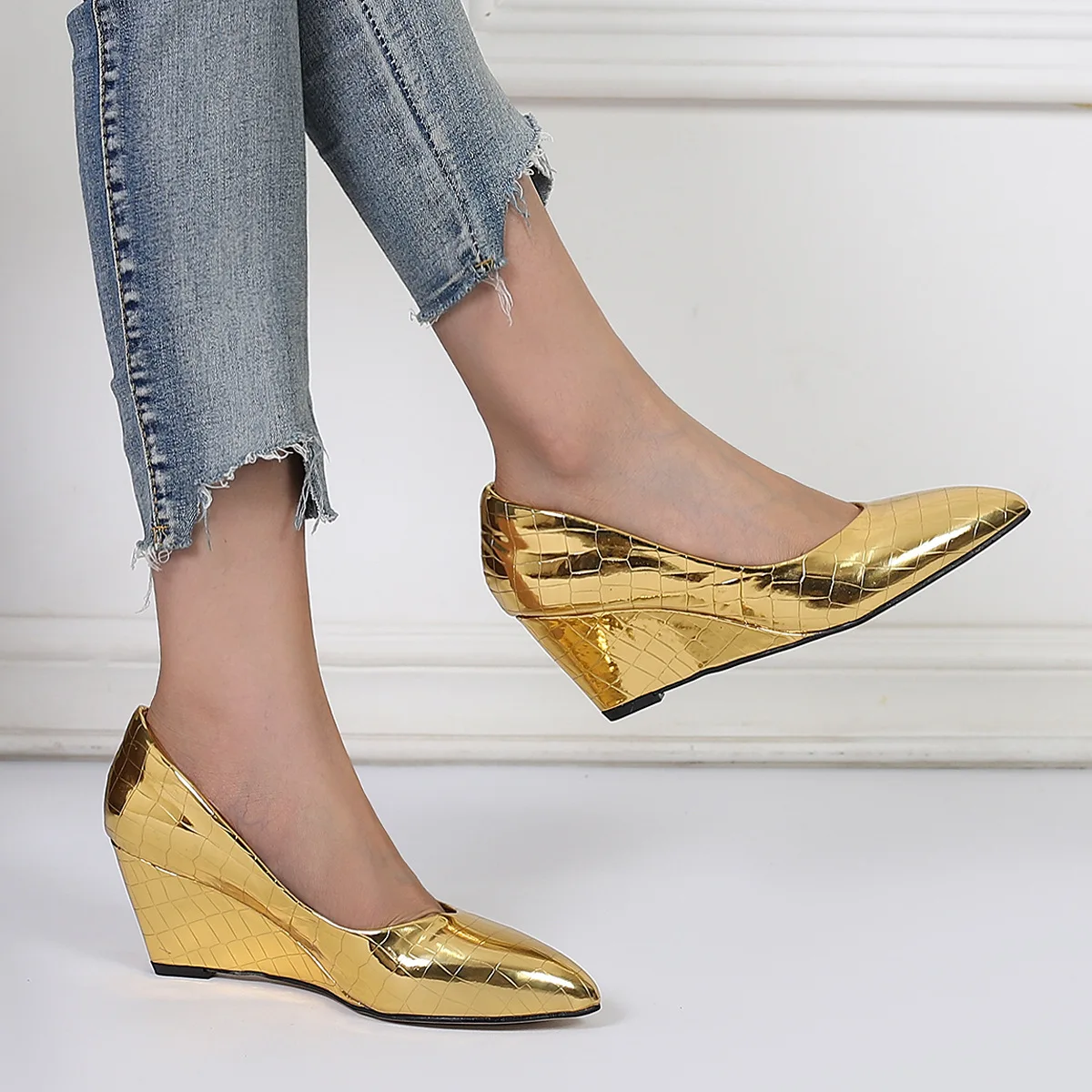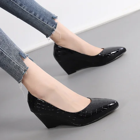 2025 Spring Summer Wedges Heels Women Party Shoes Fashion Office Pointed Toe Plu