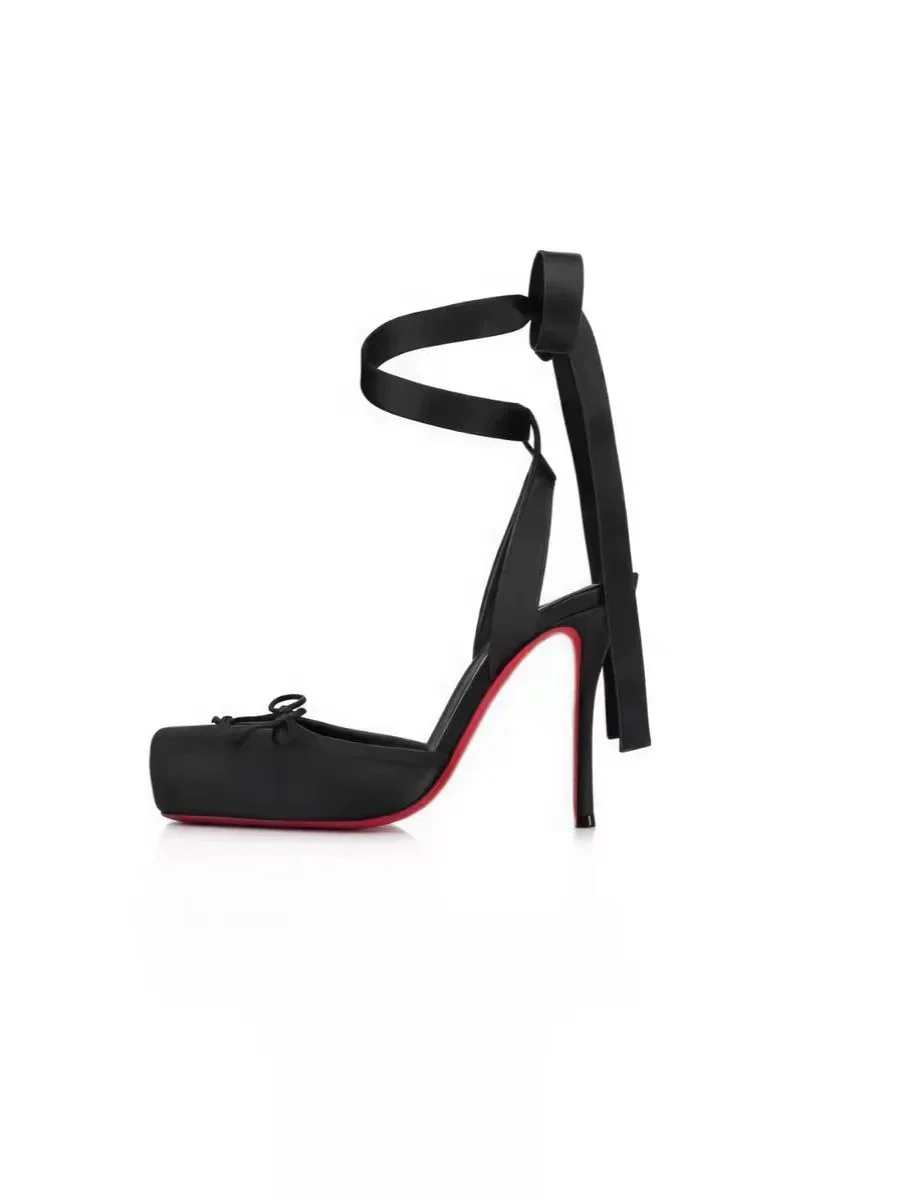 2025 Summer New French Girls' Ballet High Heels Satin Ribbon Ballet Bow Hooded S