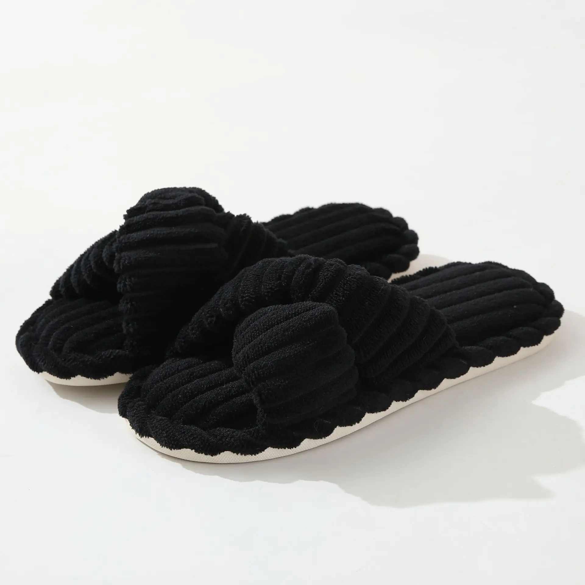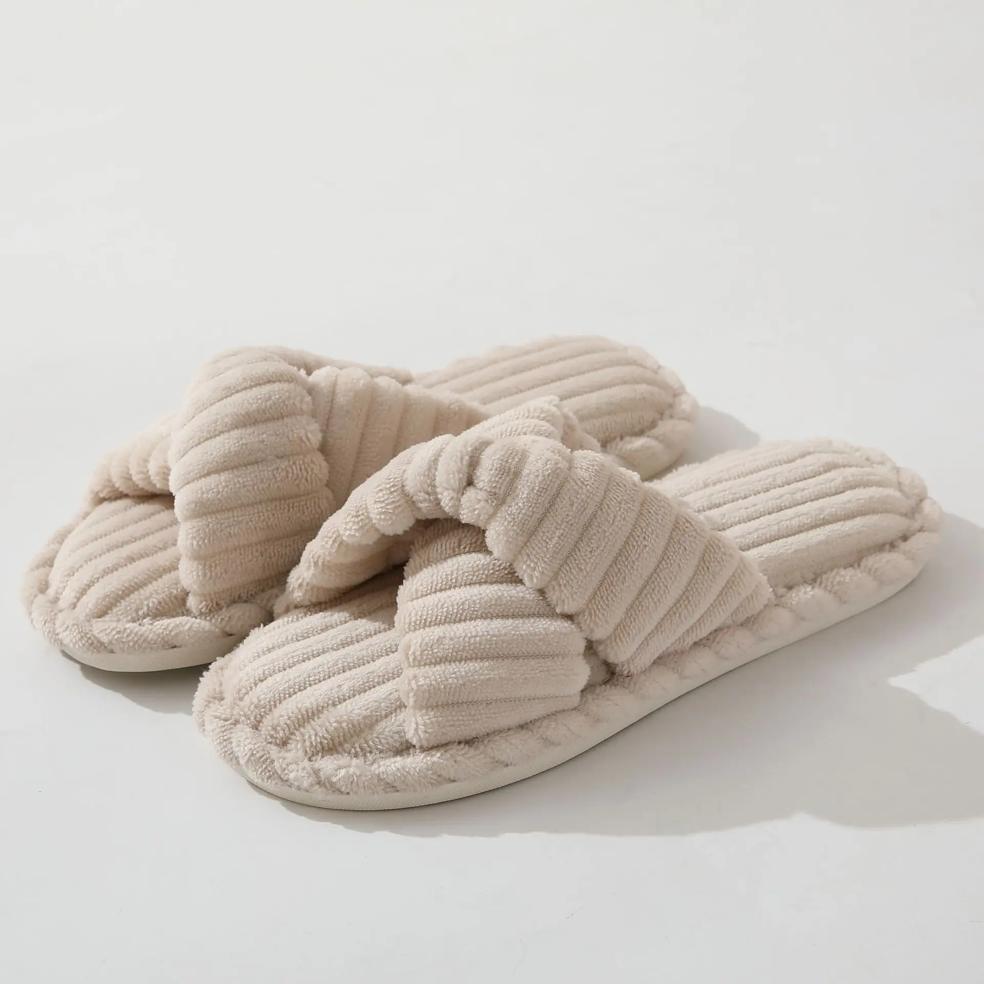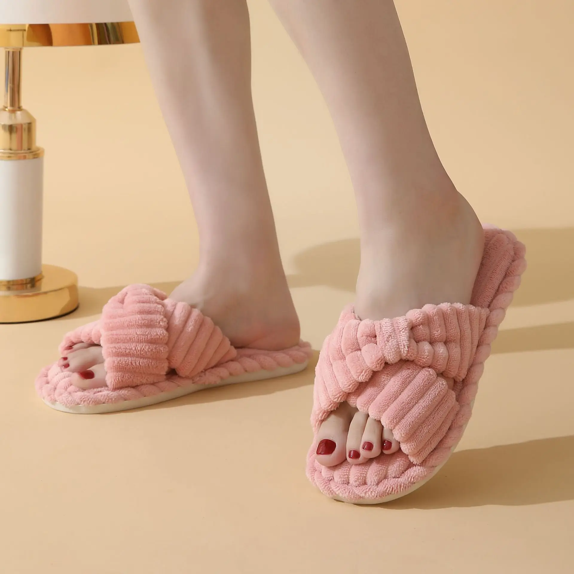 2026 Women's Autumn/Winter New Cotton Non slip Home Slippers Warm Toe Cross Flat