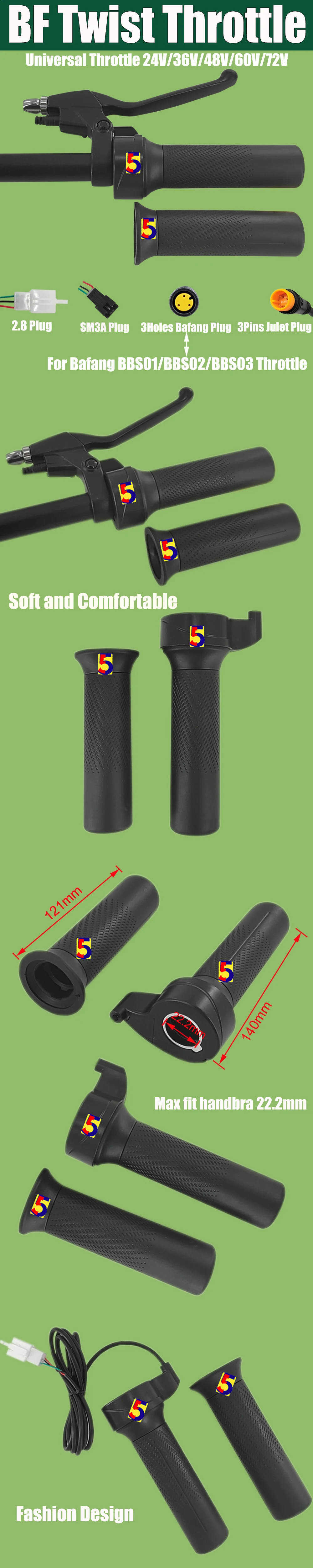 Ebike Twist Throttle 24V/36V/48V/60V/72V/84V Bafang Thottle Bafang Mid Motor Throttle+Julet/SM/2.8 Plug