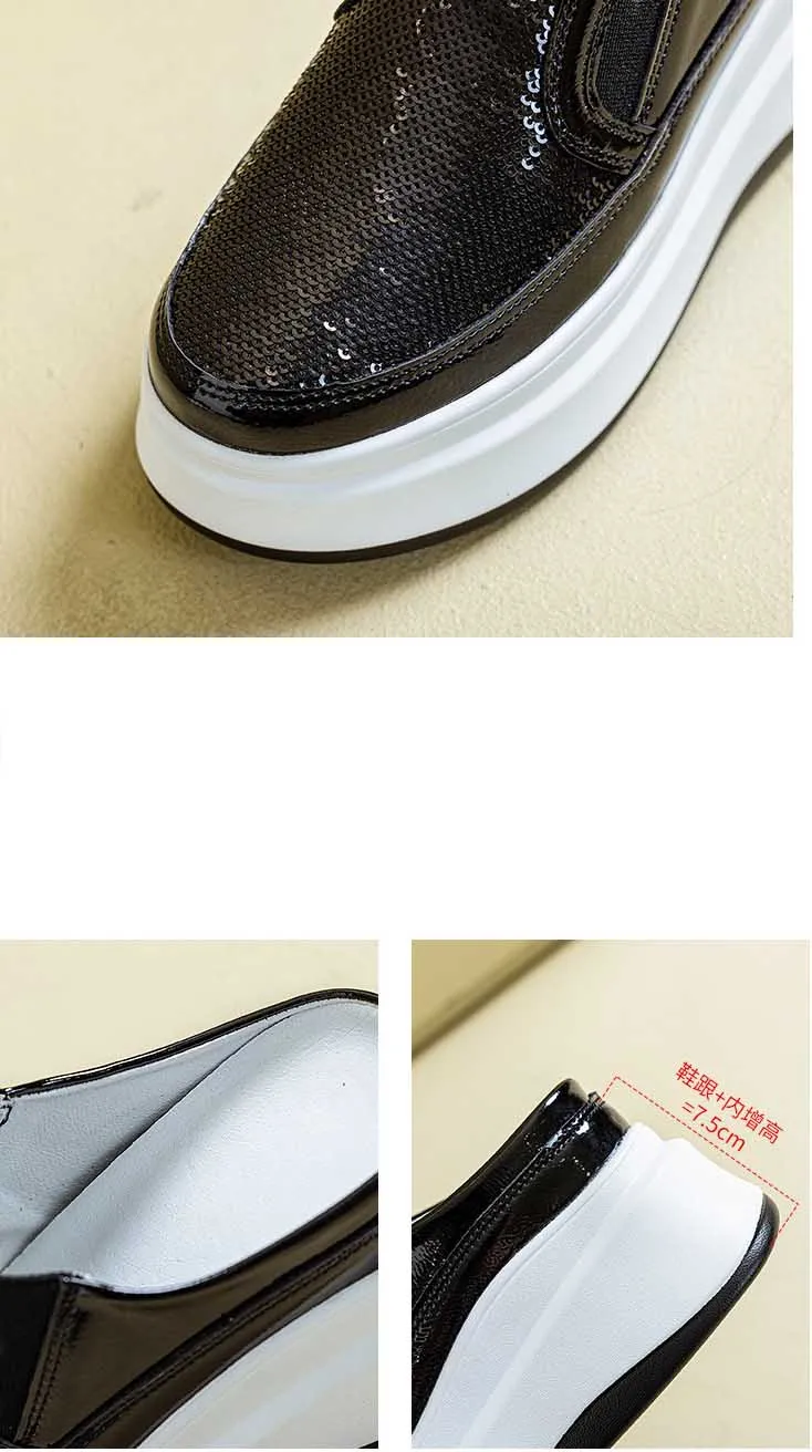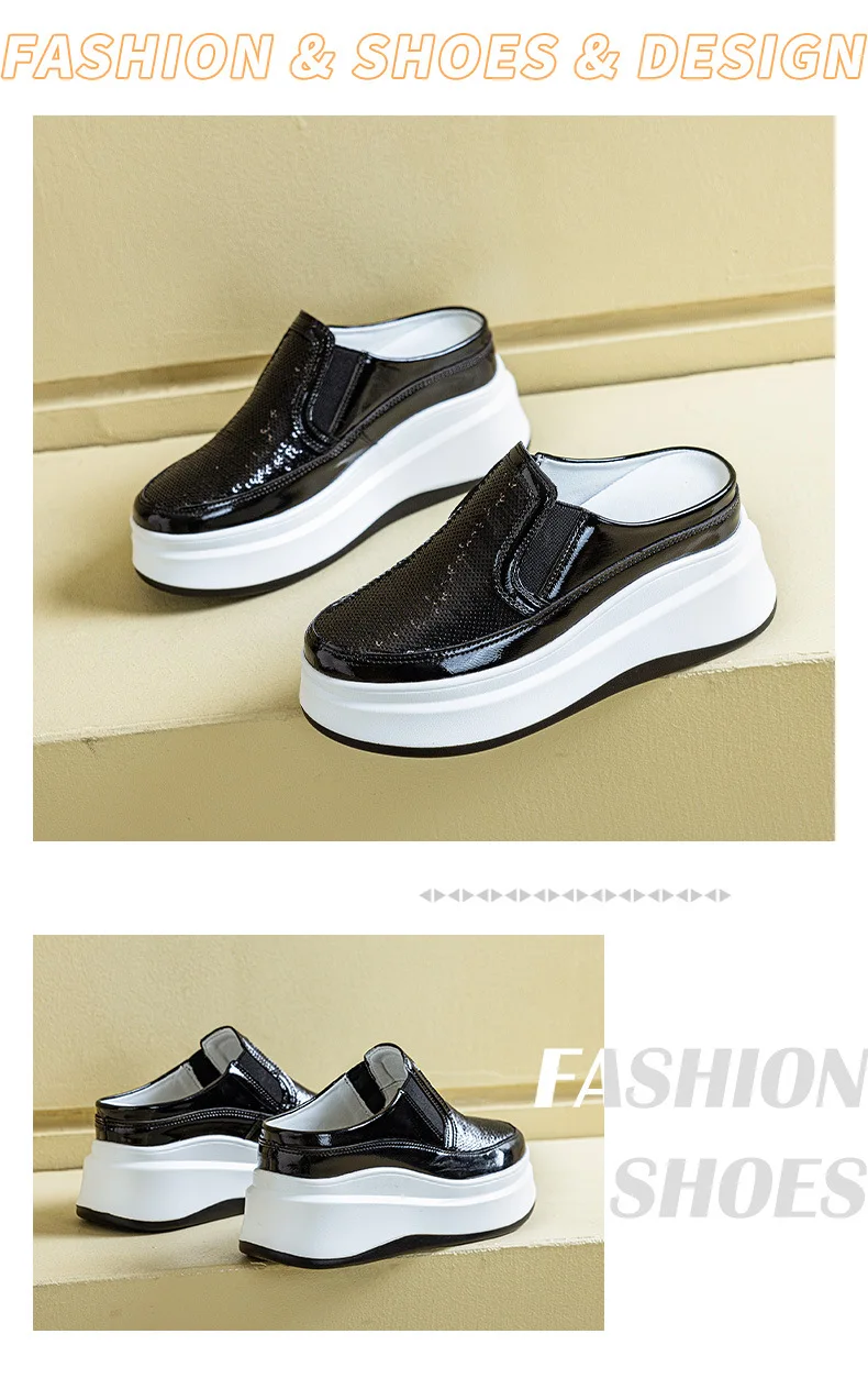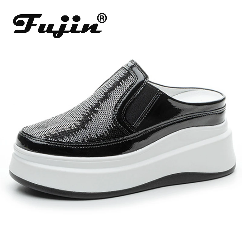 Fujin 7.5cm Patent Genuine Leather Platform Autumn Breathable Pumps Summer Sprin