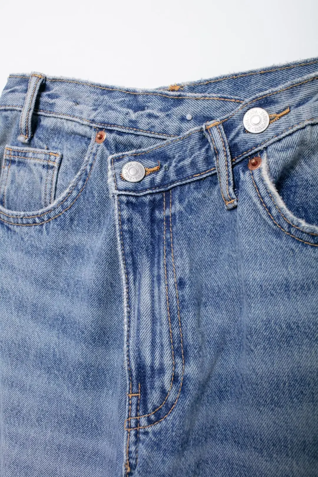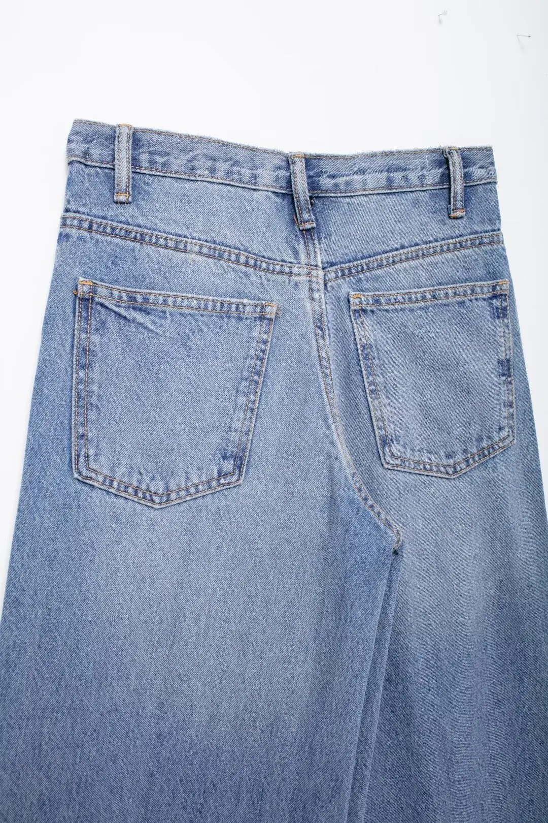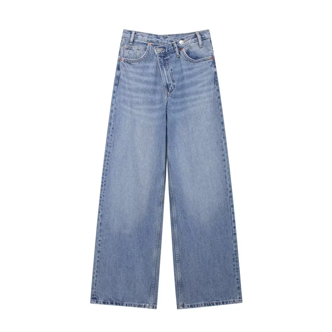 Jeans For Woman New Fashion Asymmetric Design High Waist Wide Leg Trousers Casua