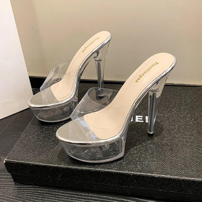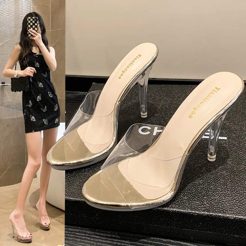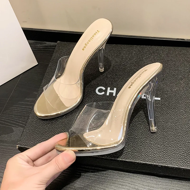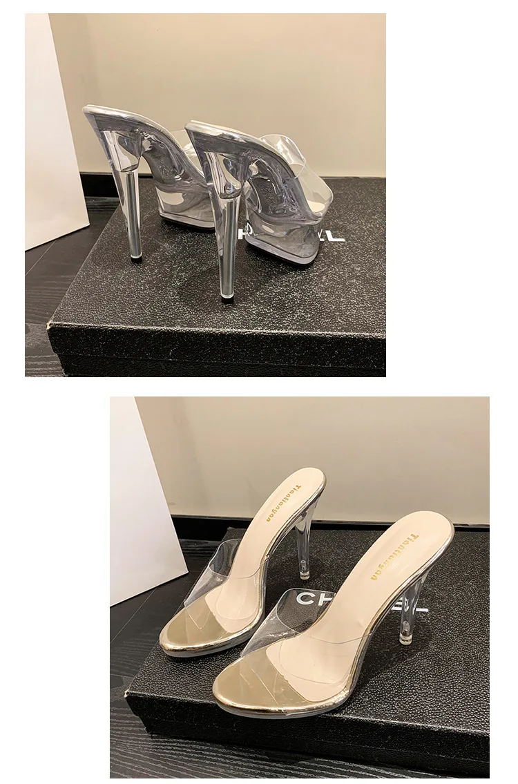 Large Size Women Shoes Summer New Elegant Crystal Heels Sandals PVC Transparent