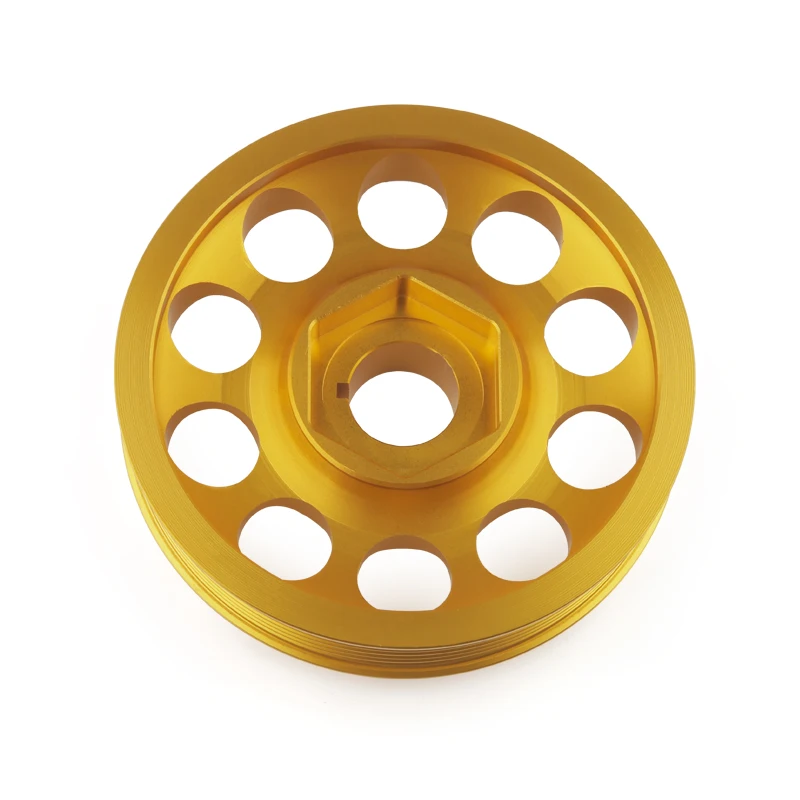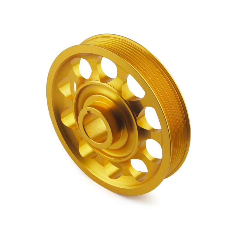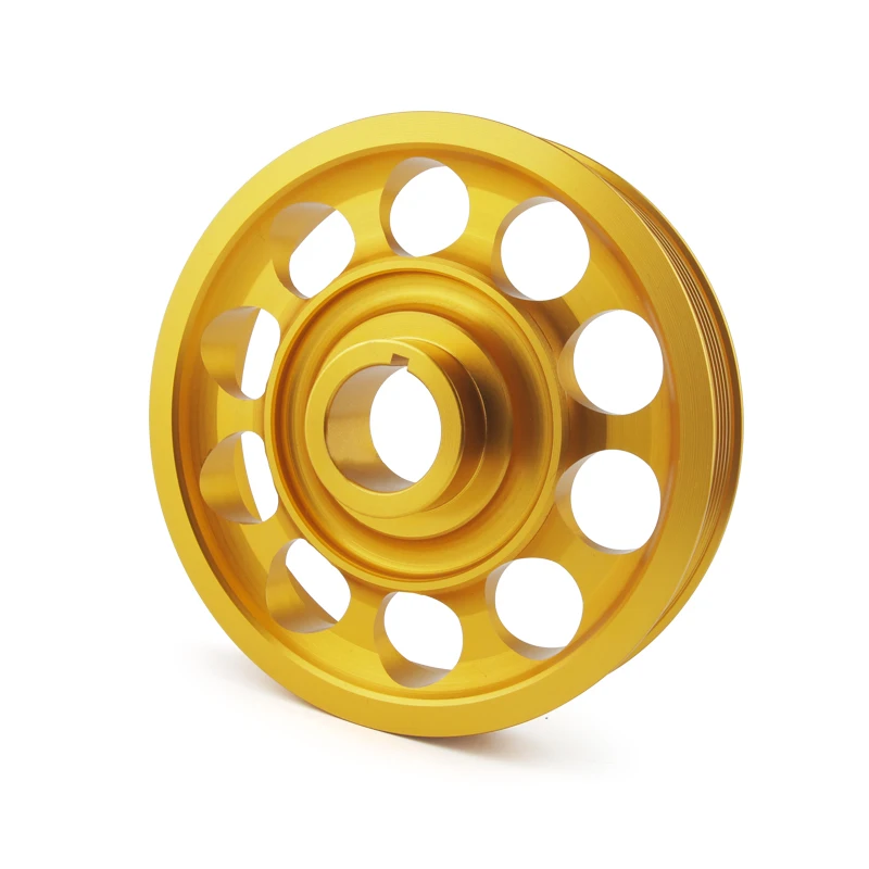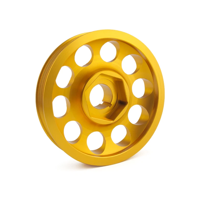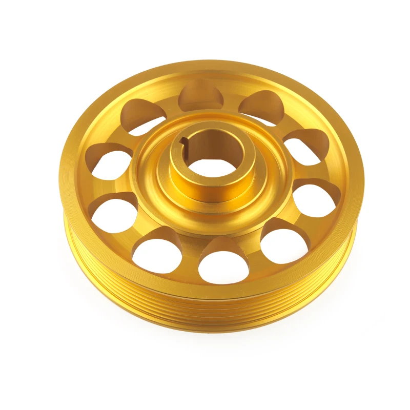 This is a lightweight 6061-T6 billet aluminum CNC machined crankshaft pulley with tolerances kept down to .001, which are