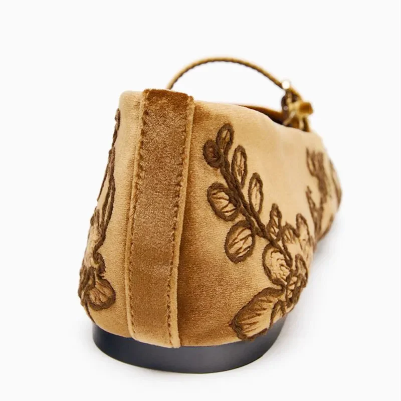 Novelty Velvet Embroidered Floral Design Ballet Flats Women Comfort Round Toe Ma