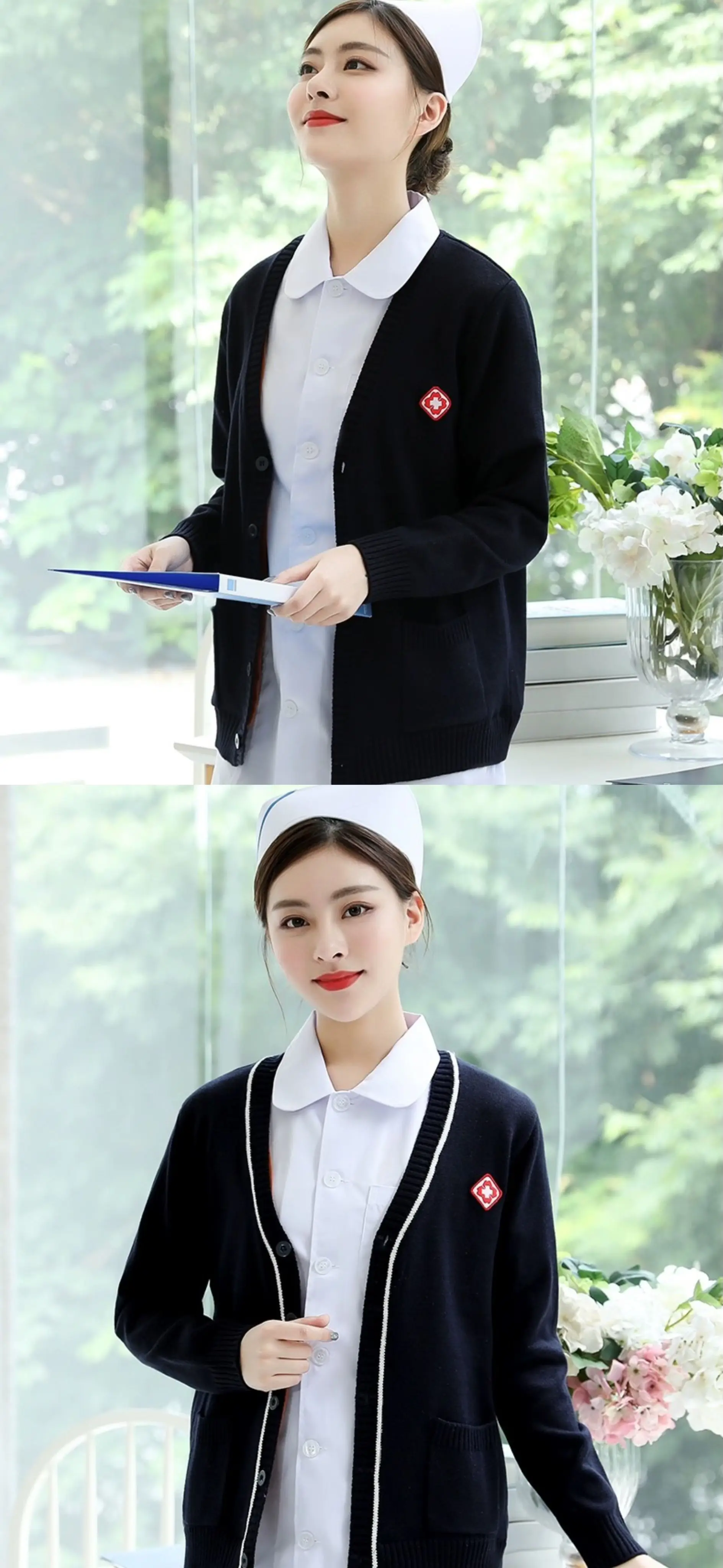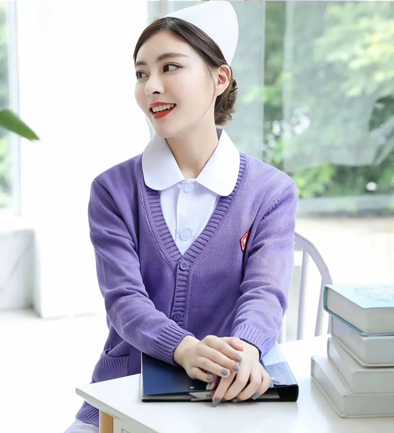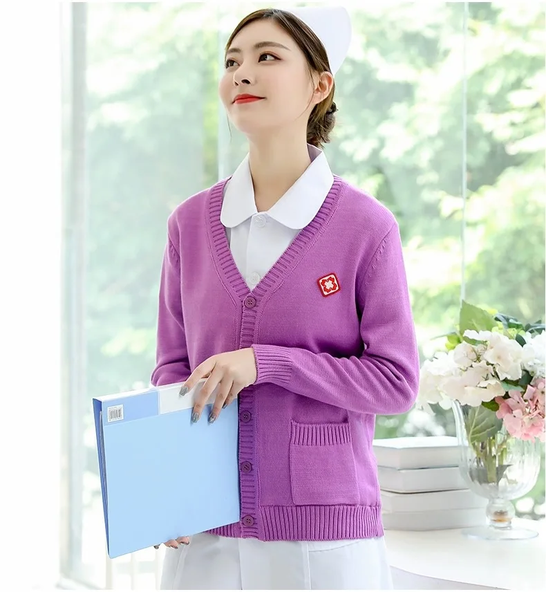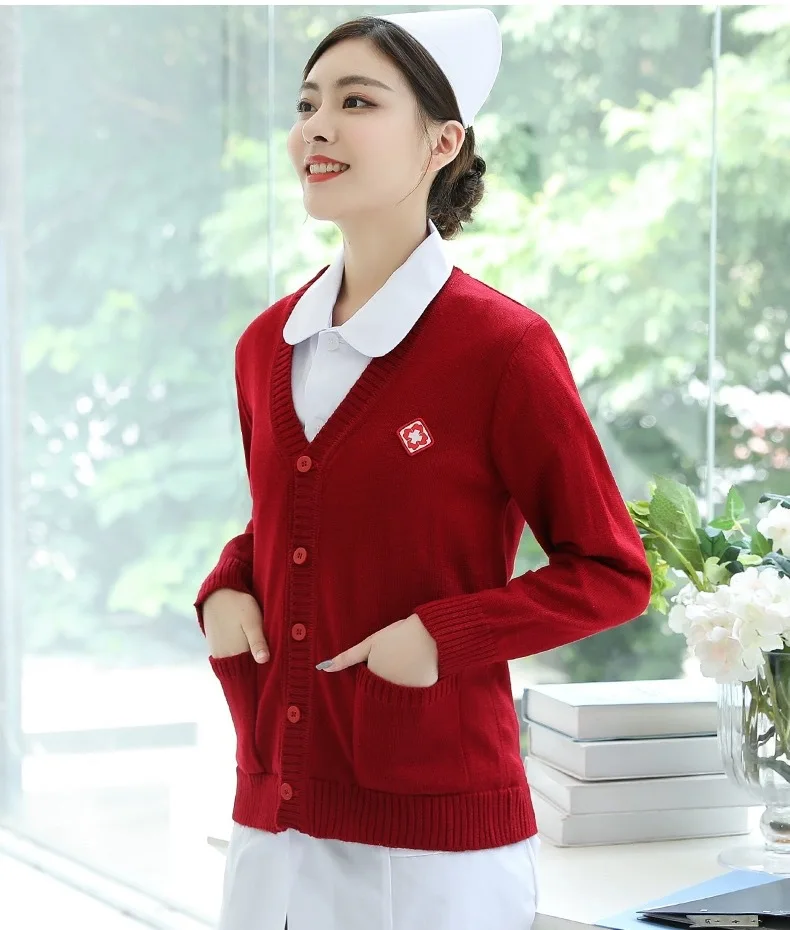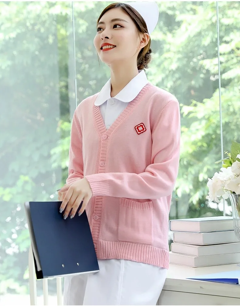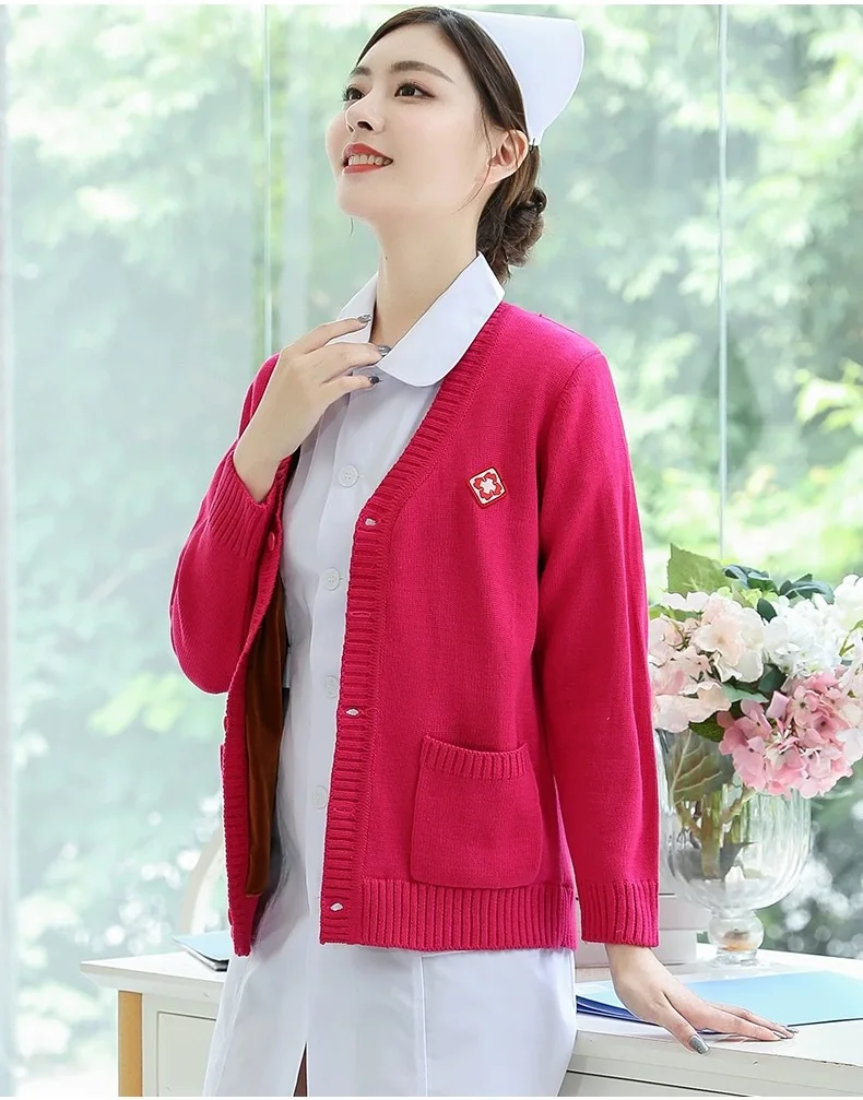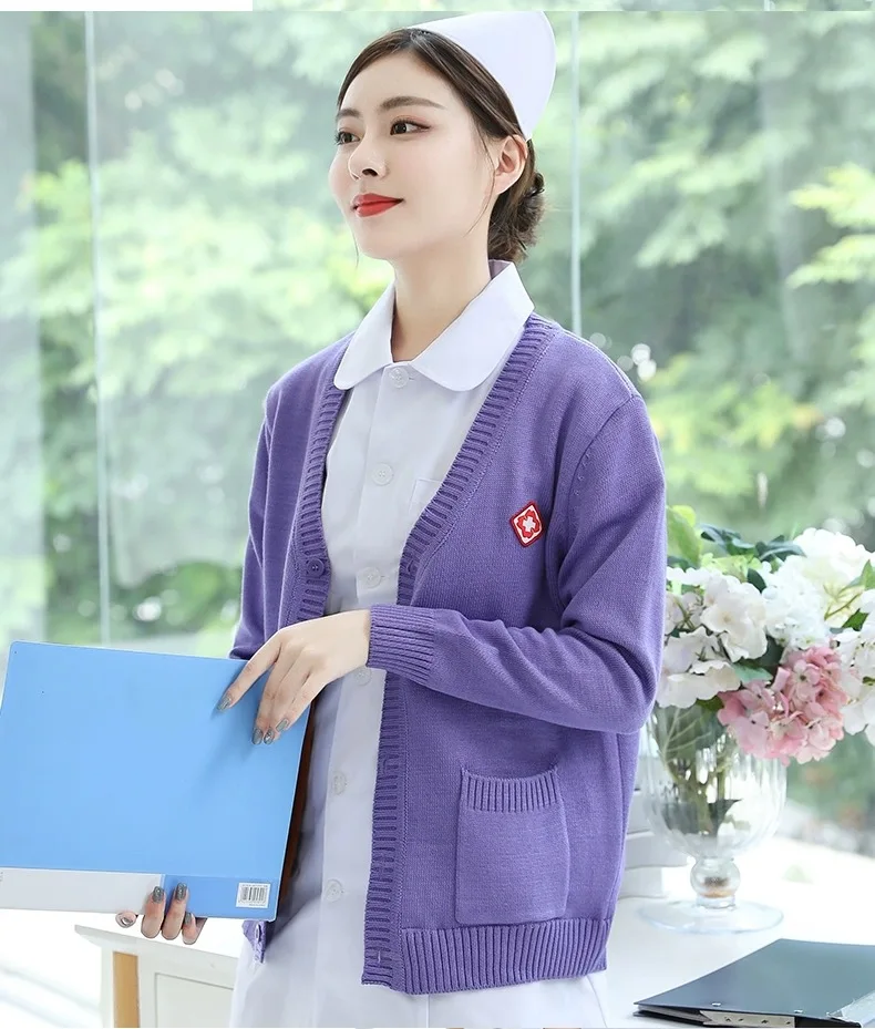Nurse Sweater Women's Knitted Sweater Doctor Nurse Uniform Outer Cardigan Jacket