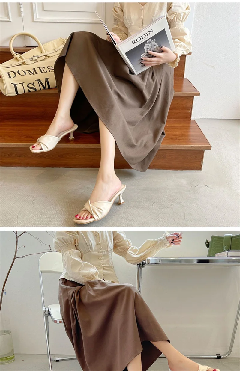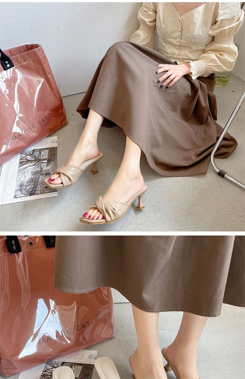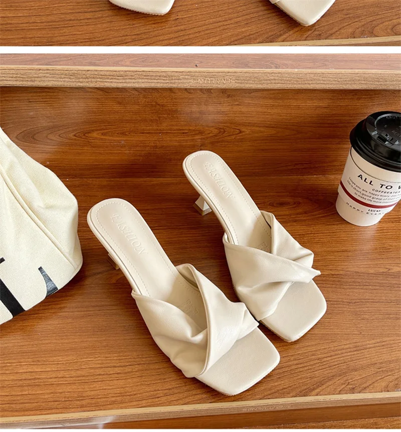 Oulylan 2024 Fashion Simple Ladies Slippers Dew Feet High Heels Solid Color Comf