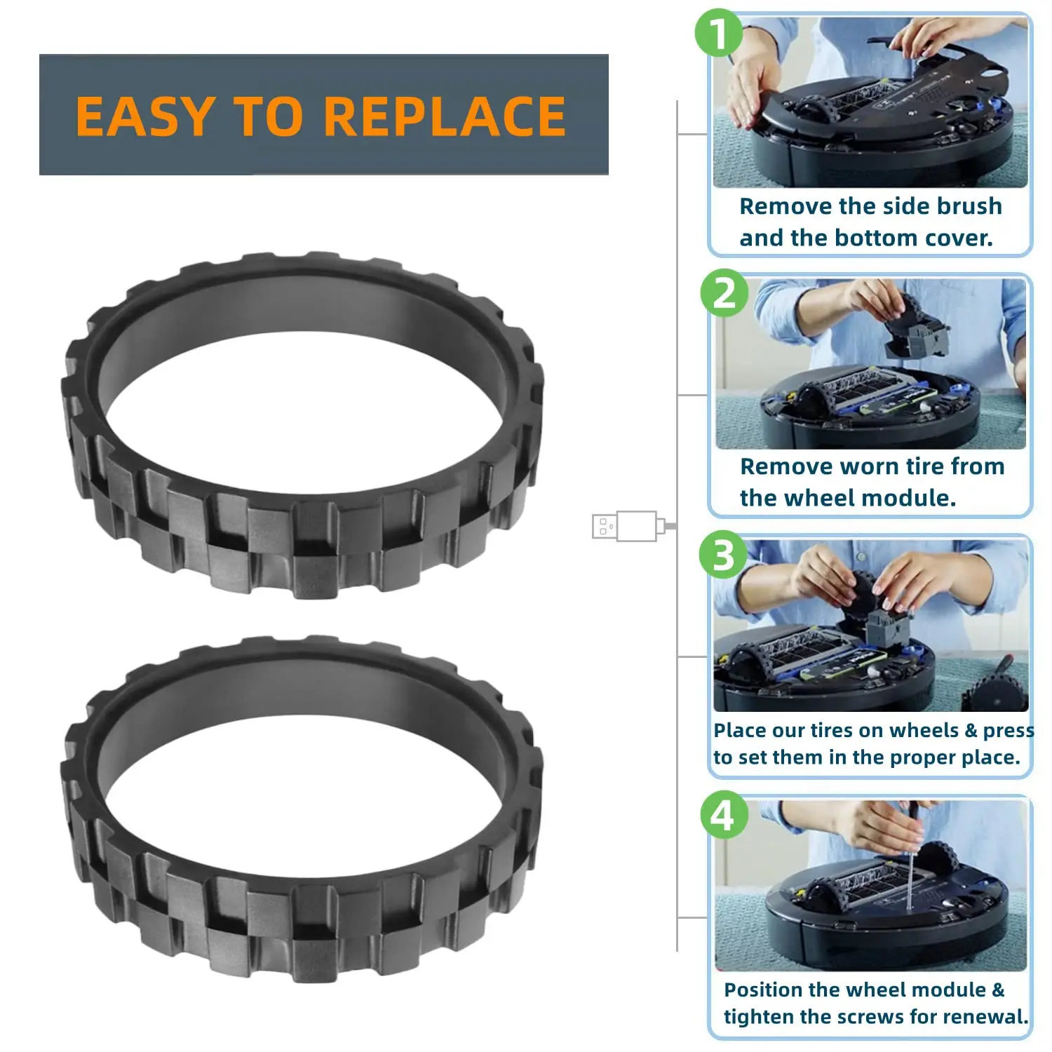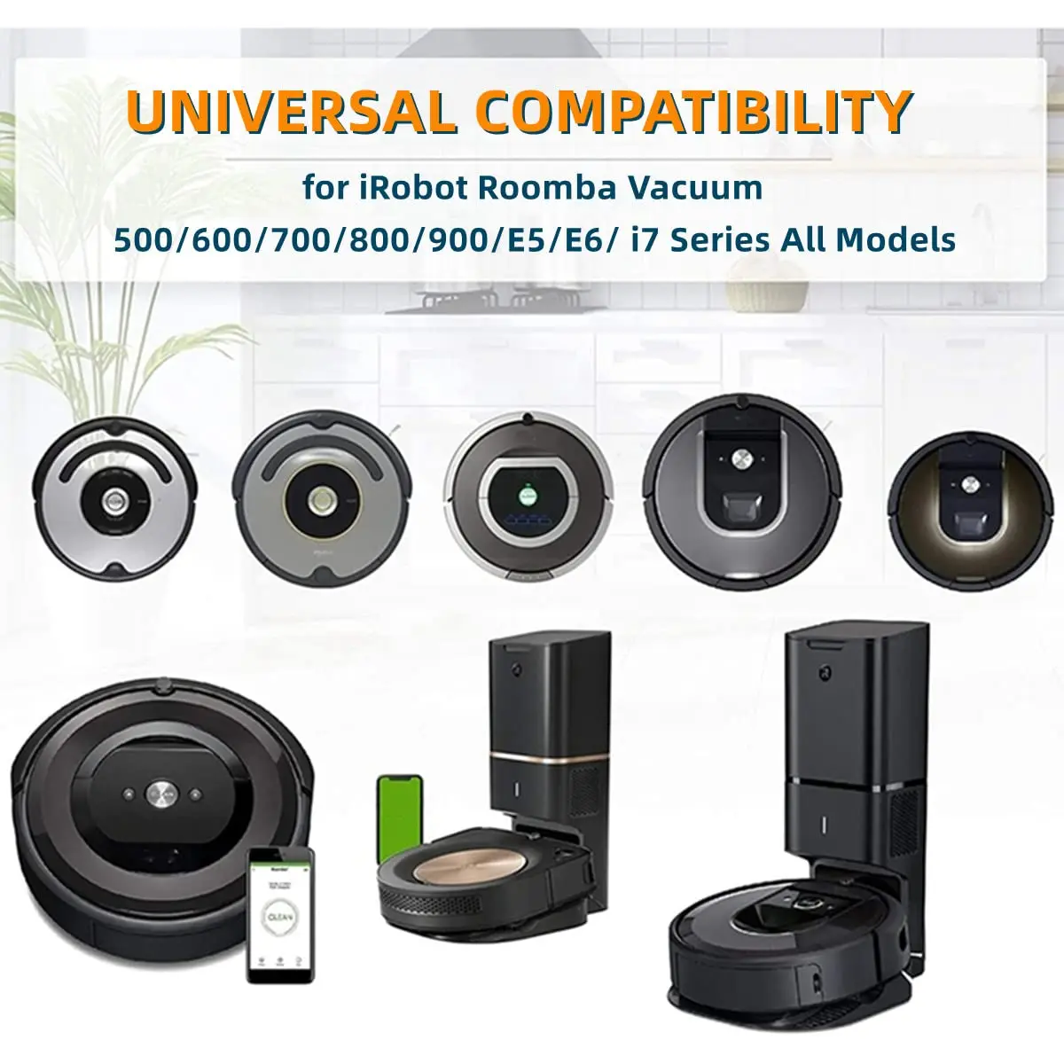 Broad Compatibility - The Replacement Tires and Front Caster Wheel Set is perfectly compatible with all iRobot Roomba 500, 600, 700, 800, 900, E5, E6, i7 models.
