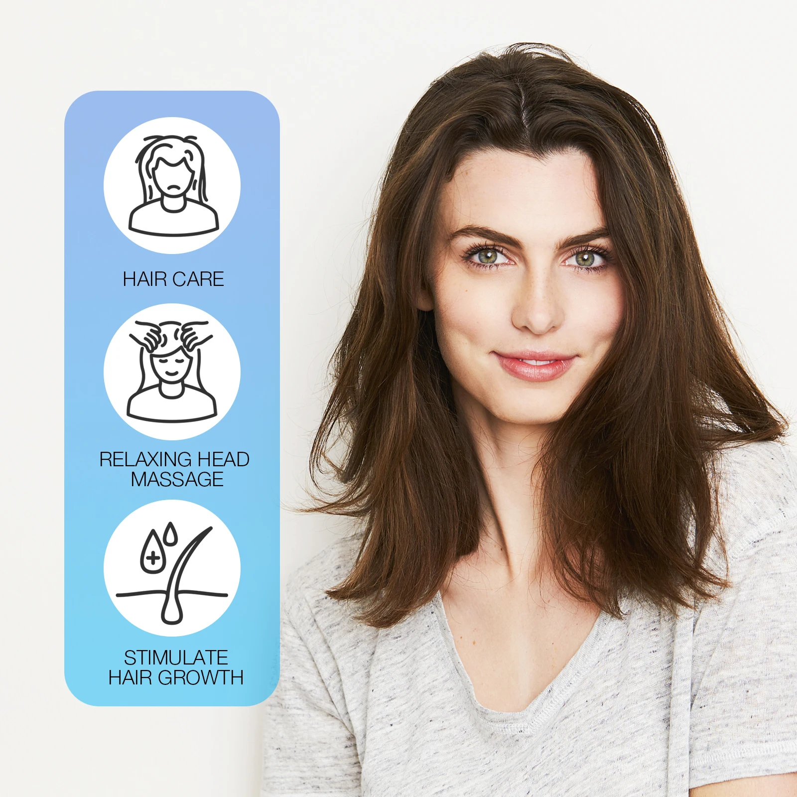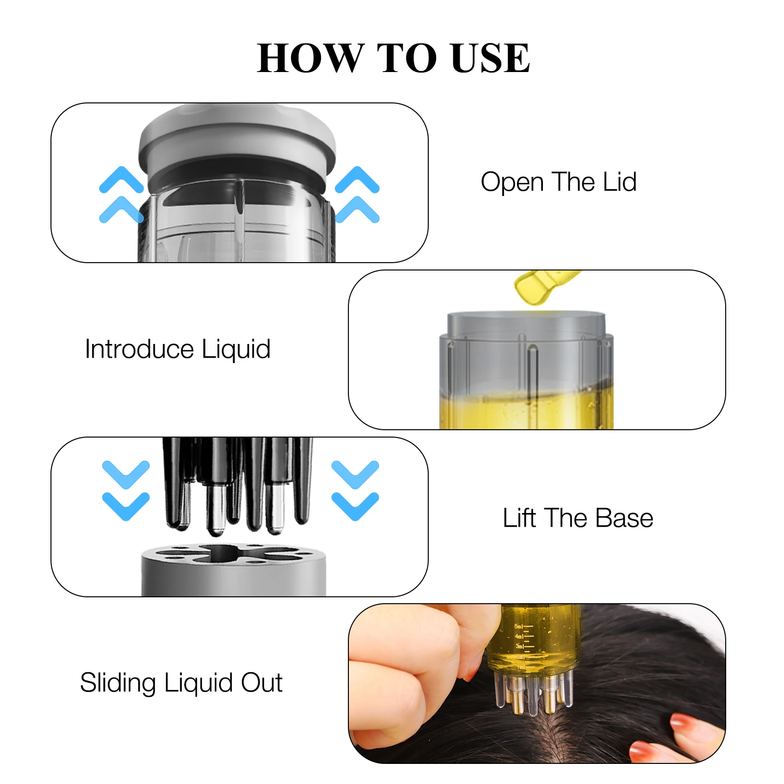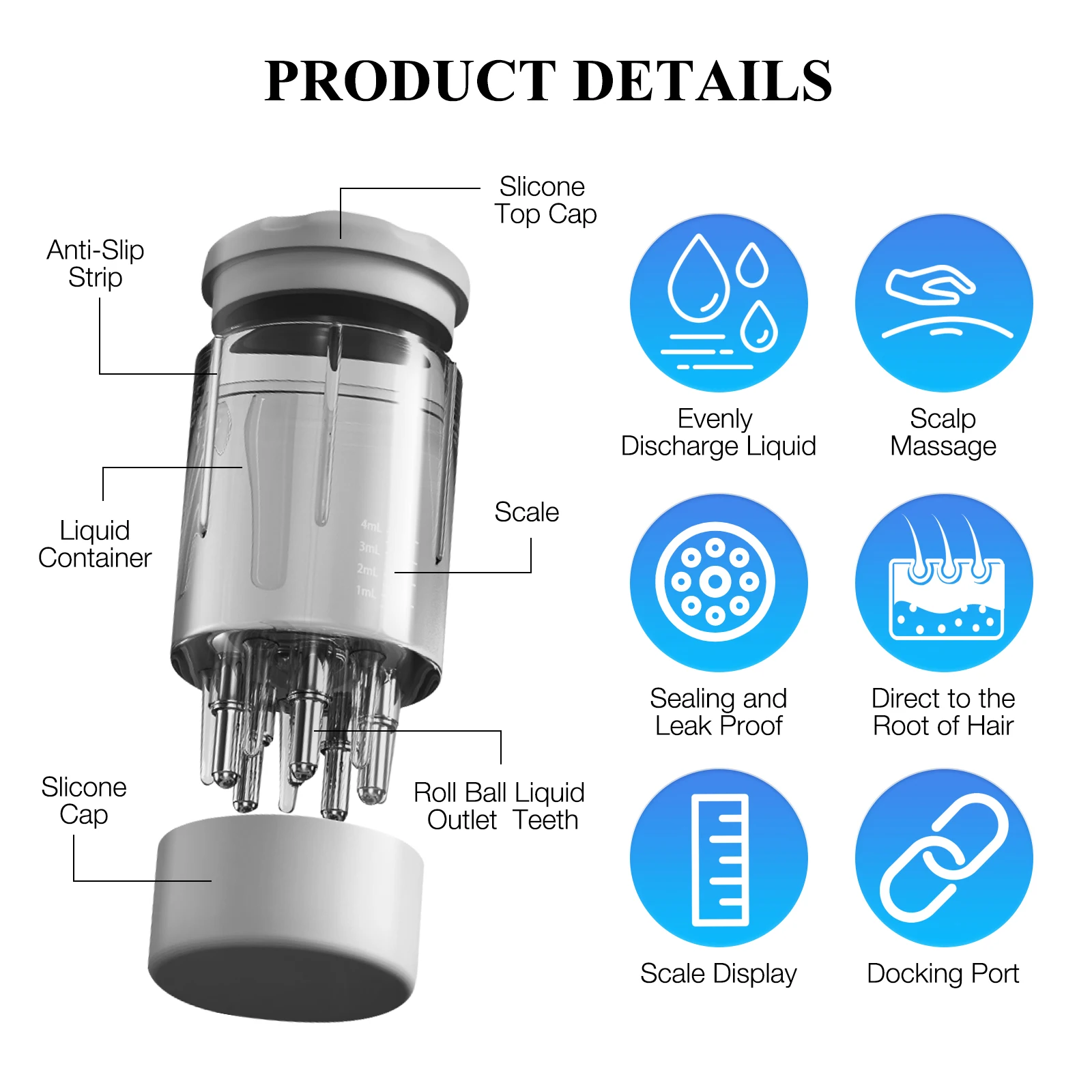6. Equipped with 5 elastic rolling ball teeth to introduce liquid medicine uniformly into the hair root, and a squeezable handle to control the volume. With it, you're free from hand stains and medicine waste.