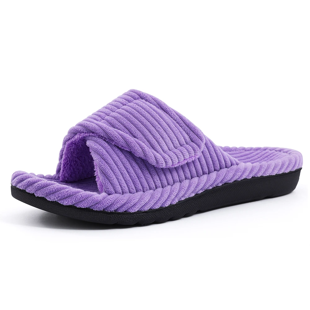 Shevalues Women's Fuzzy Warm Slippers Comfy Open Toe Sandals Memory Foam Indoor Bedroom Slides Rubber Sole House Shoes For Women