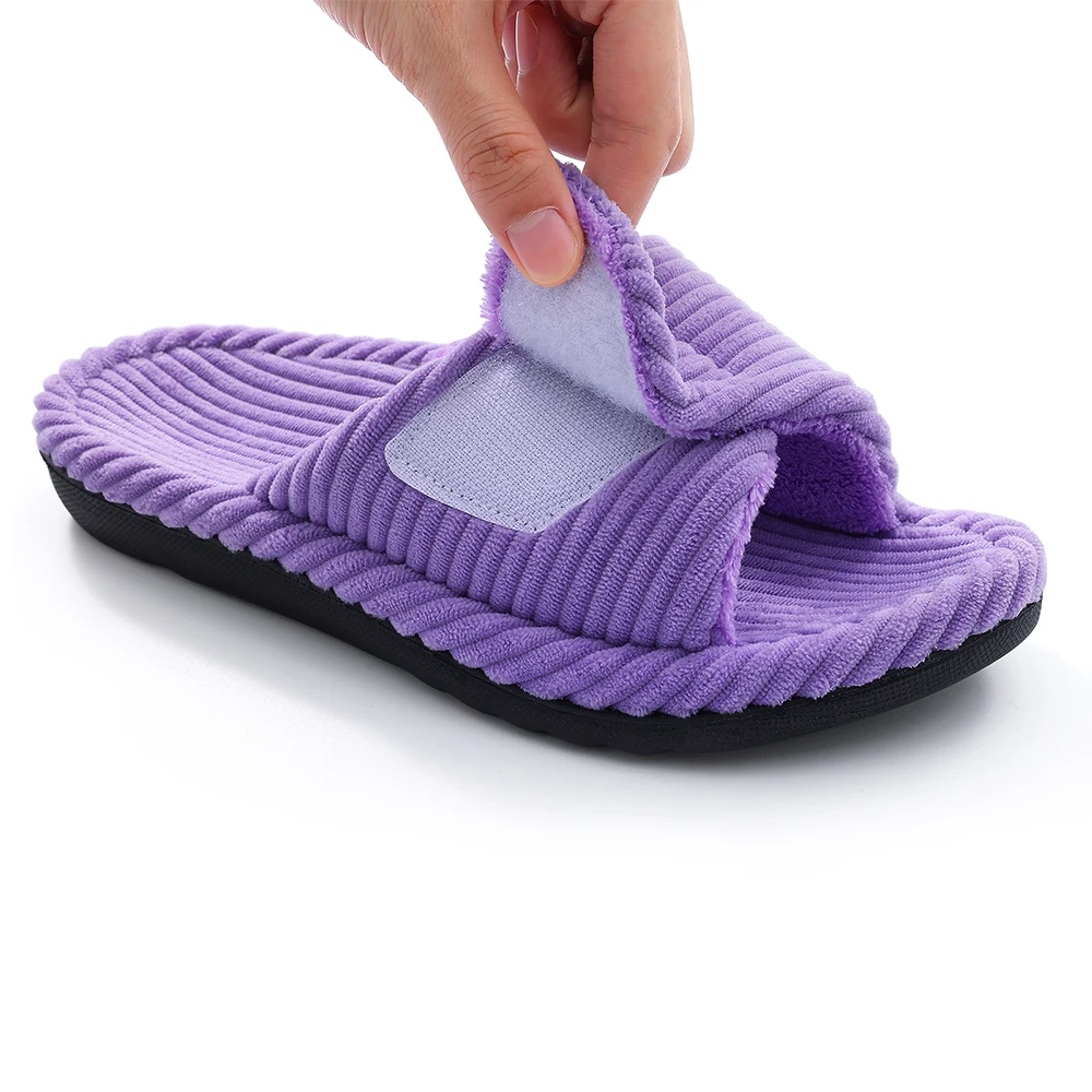 Shevalues Women's Fuzzy Warm Slippers Comfy Open Toe Sandals Memory Foam Indoor