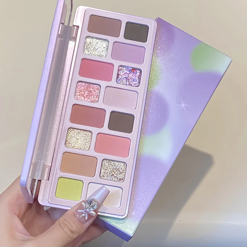 Spring and Summer Sweet Juice Pink Green Color Contrast 16 Color Eyeshadow Makeu