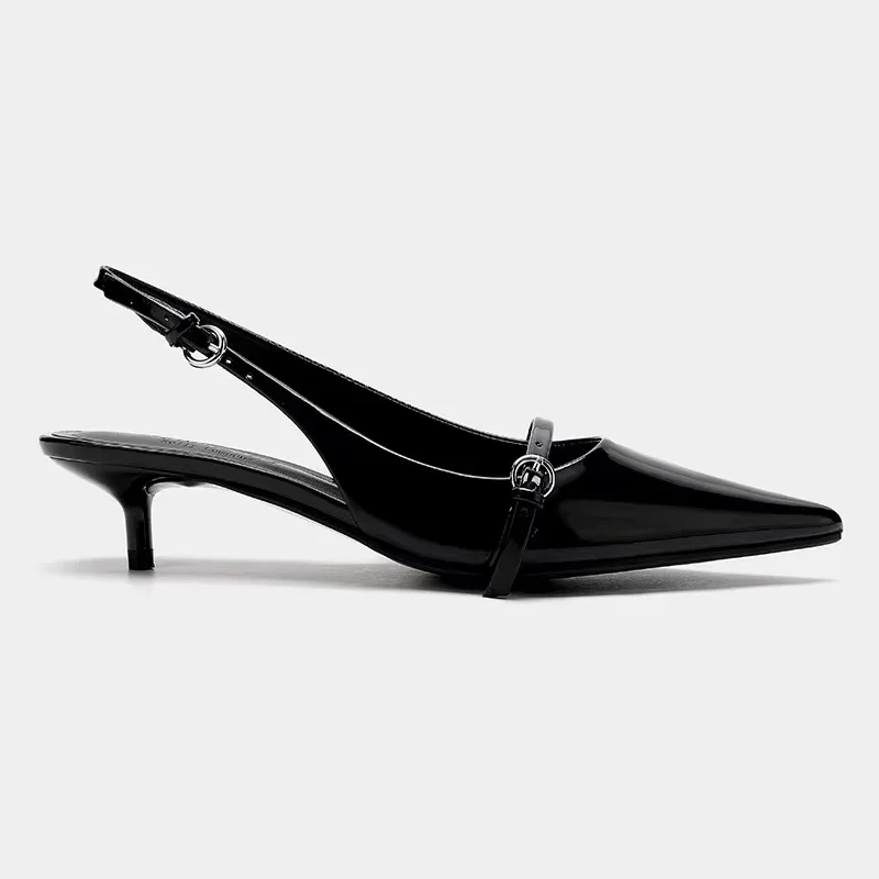 Summer New Baotou Sandals Women's Fashion Pointed Head Shallow Mouth Metal Buckl