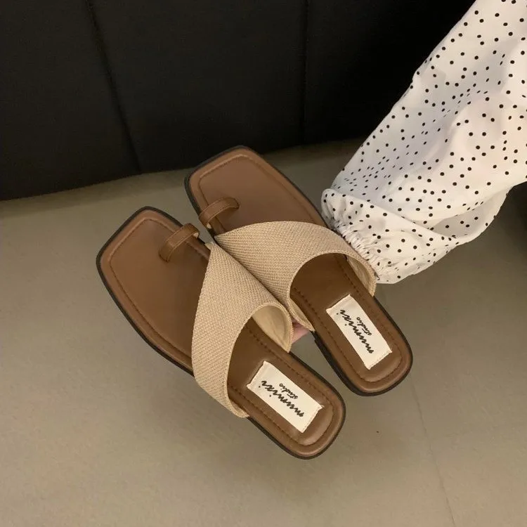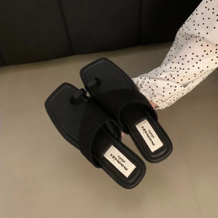 Summer Slippers Women's Fashion Square Toe Cover Bright Leather Soft Soled Anti-