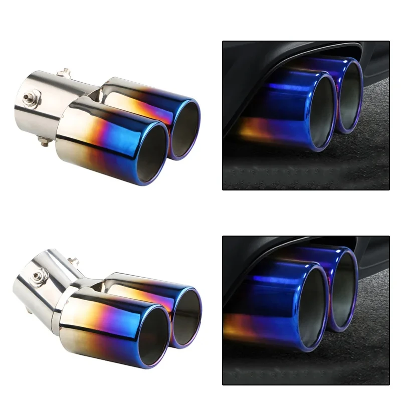 Universal Curved Double Outlet Car Exhaust Trim Muffler Pipe Tail Car Decoration