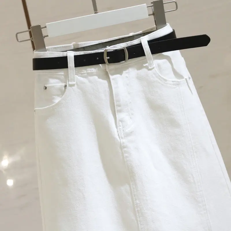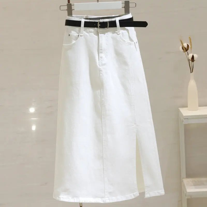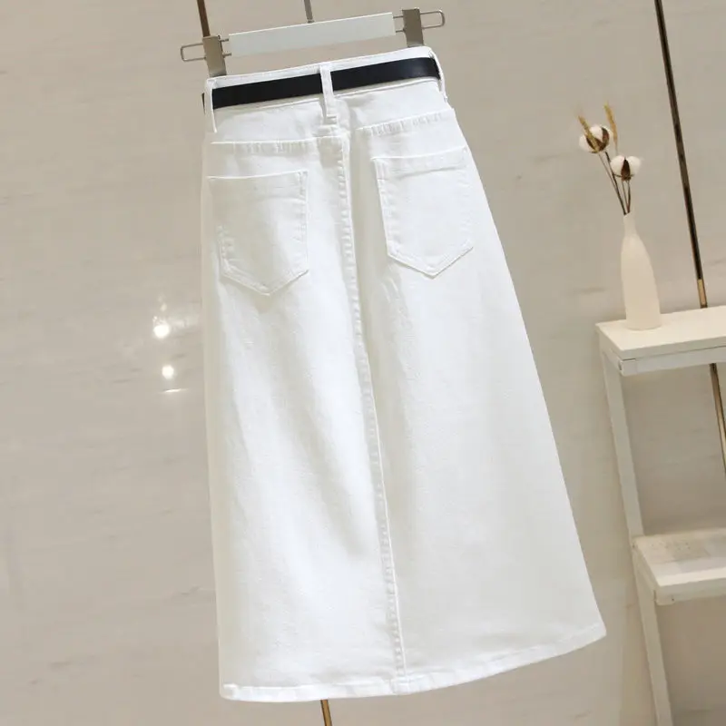 White High-waisted Denim Skirt 2025 Autumn New Women's Medium and Long A-shaped