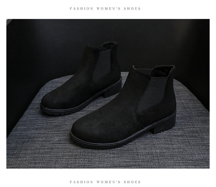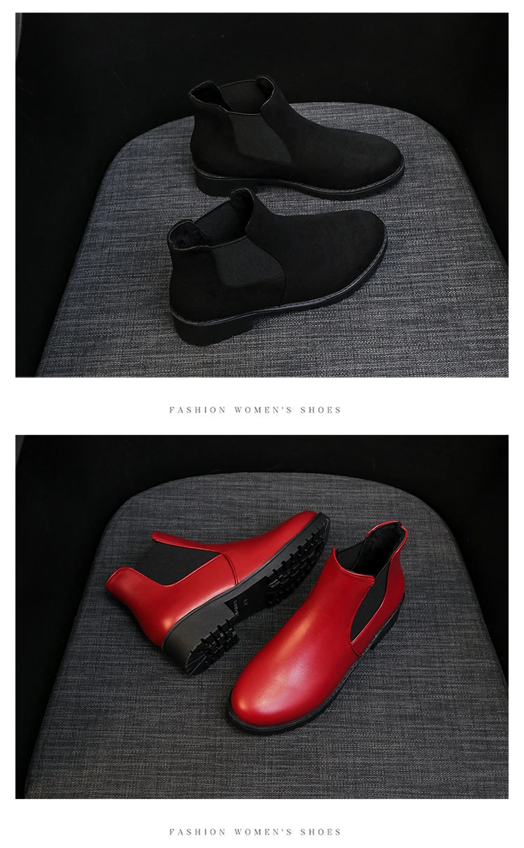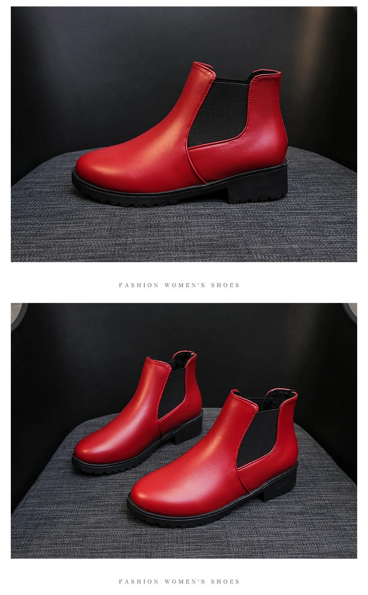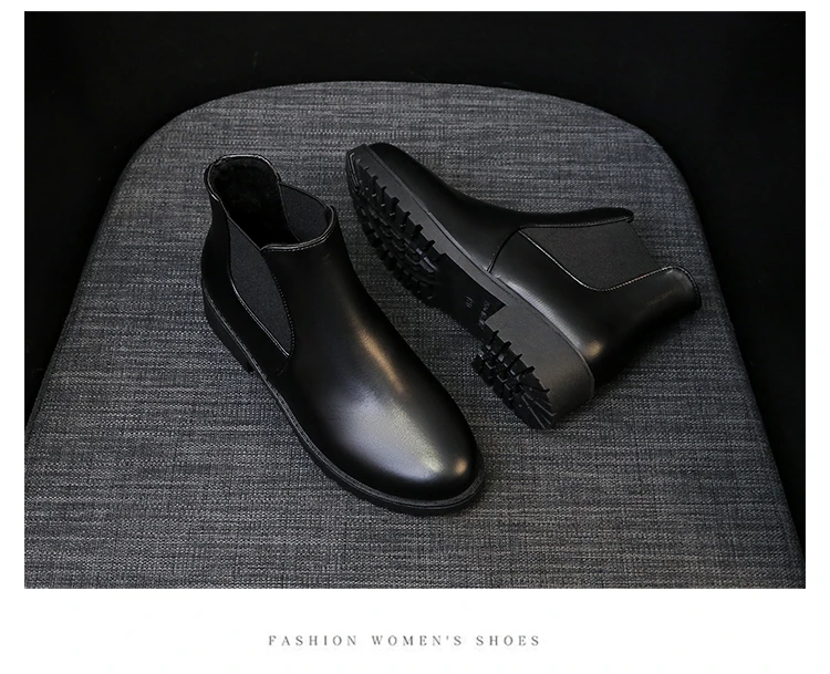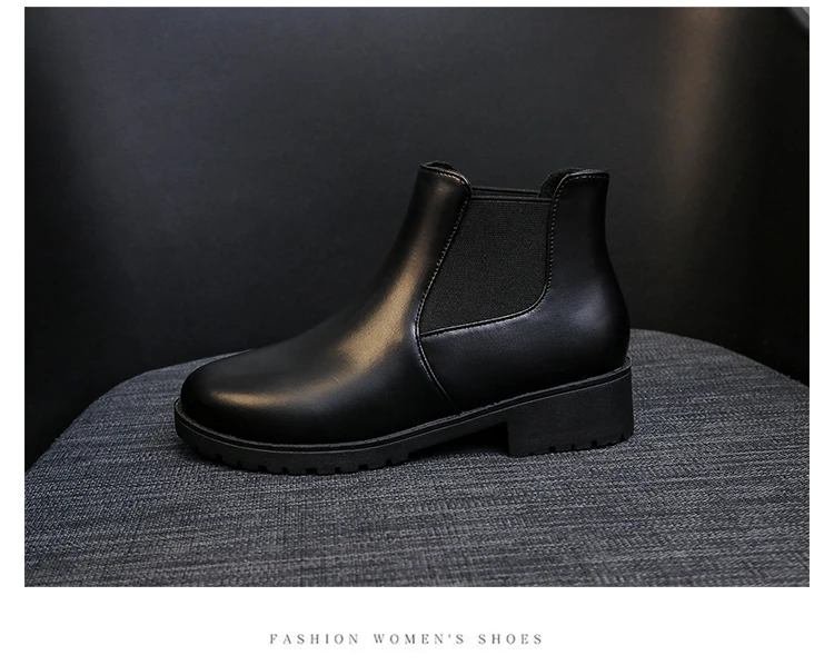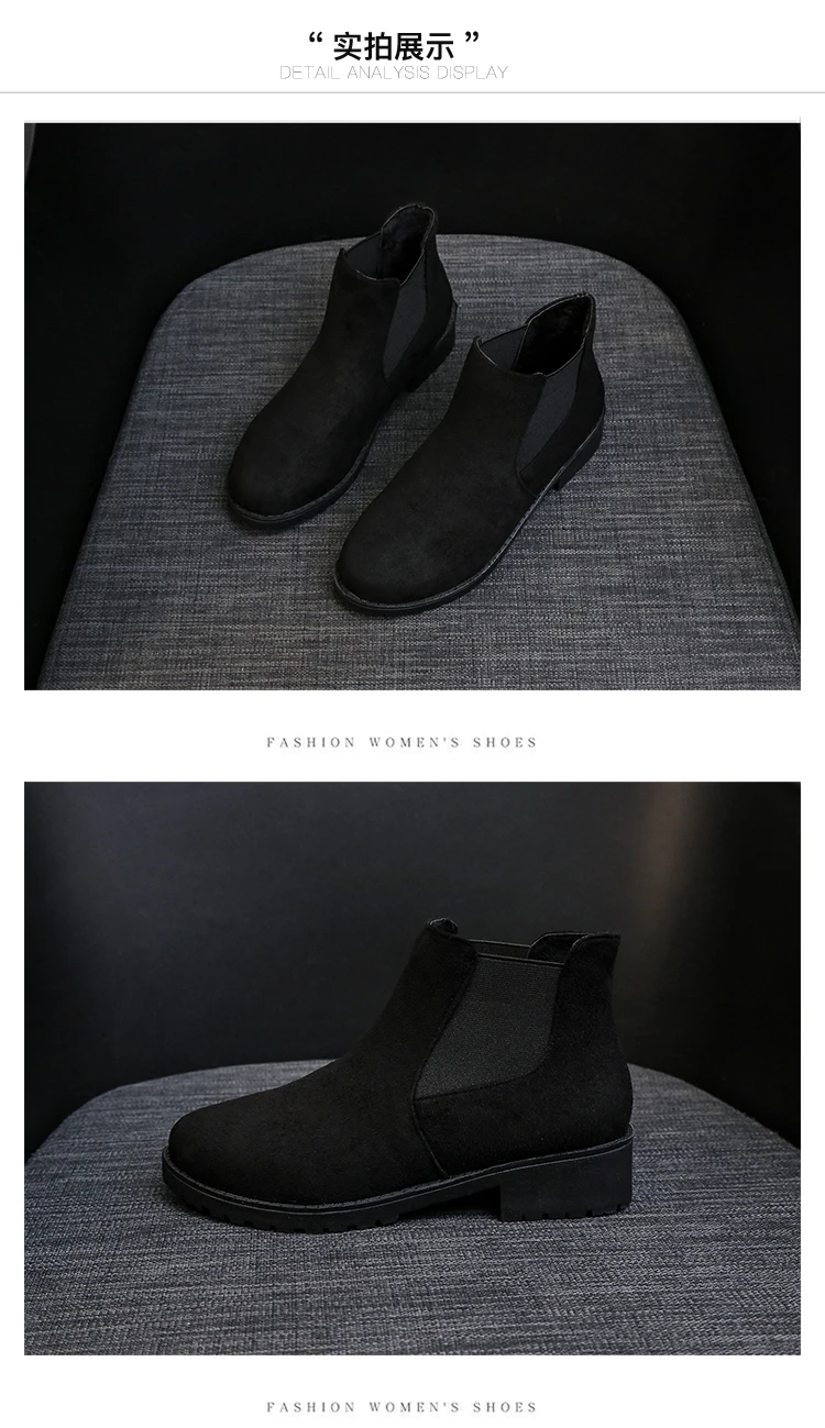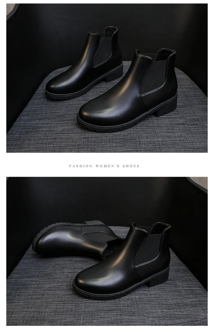 Women Boots Chunky Heel Platform British Style Thick Sole Increase Height Casual