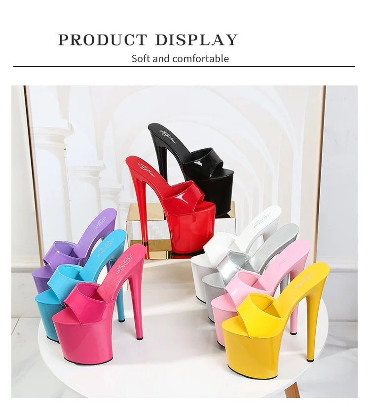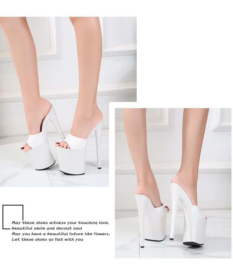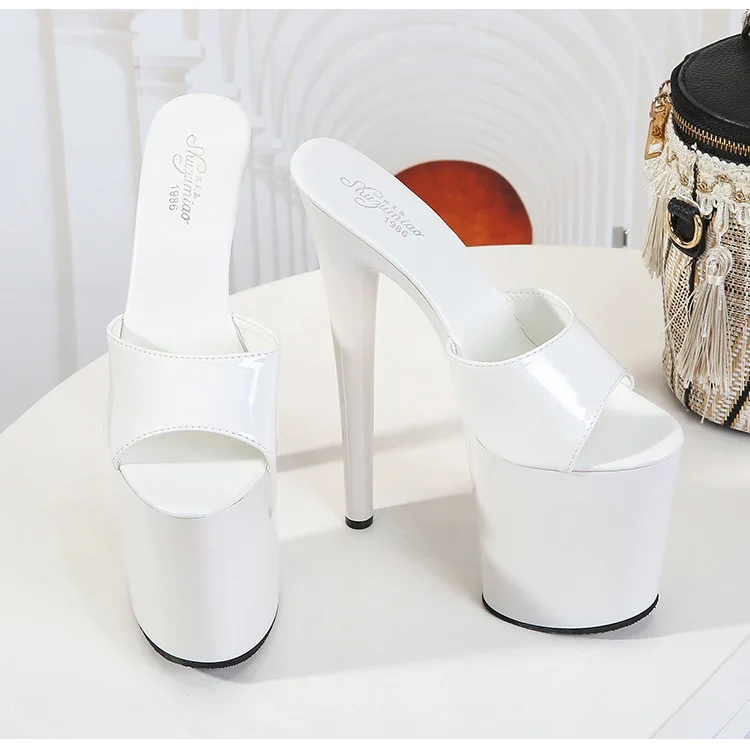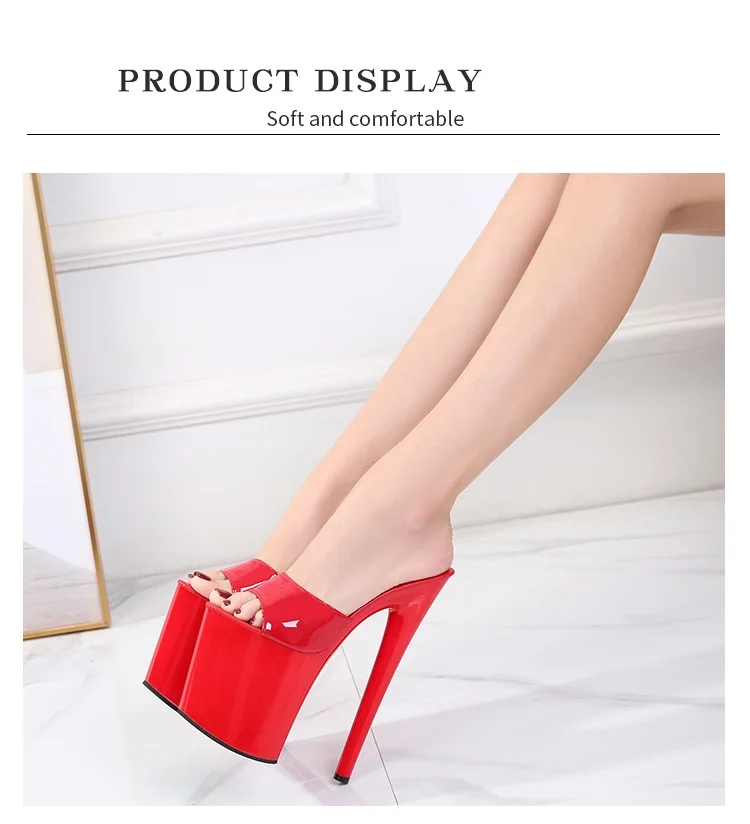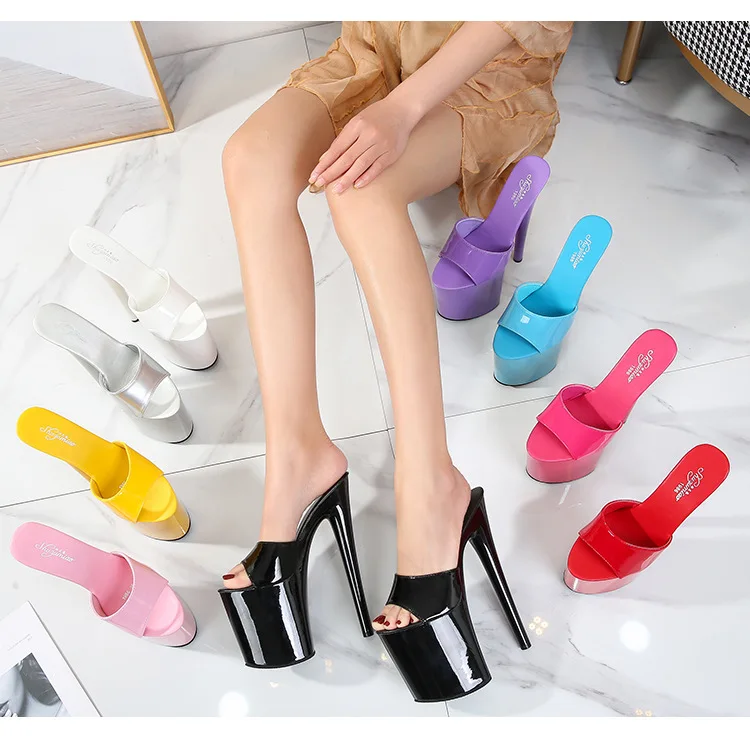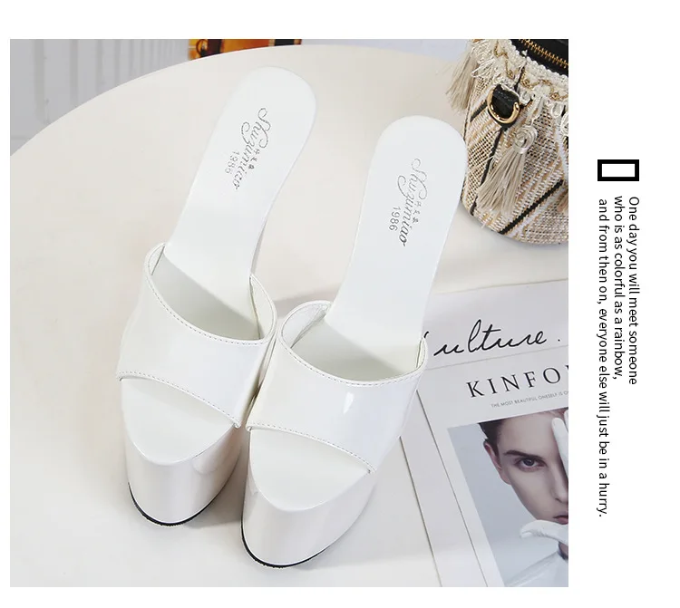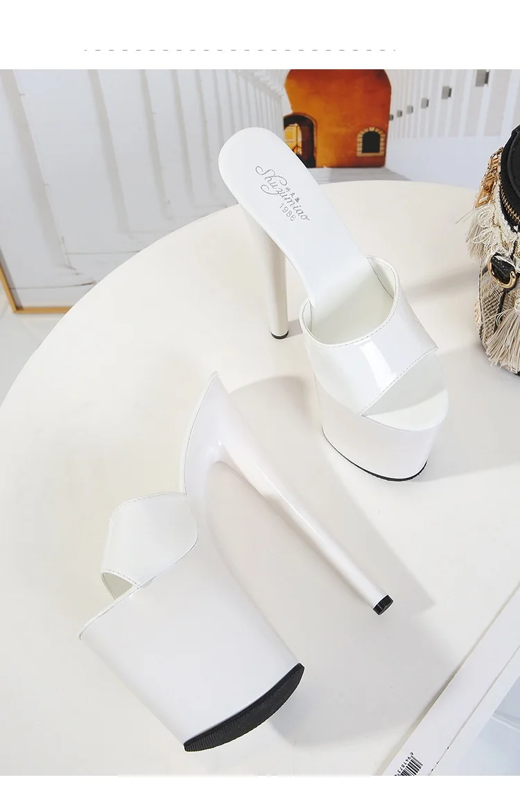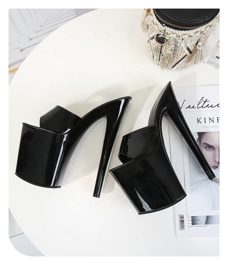 Summer PU Patent Leather Slipper Women Outside Slippers Women Shoes High Heels 20CM Platform Sexy Slippers Nightclub Party Shoes