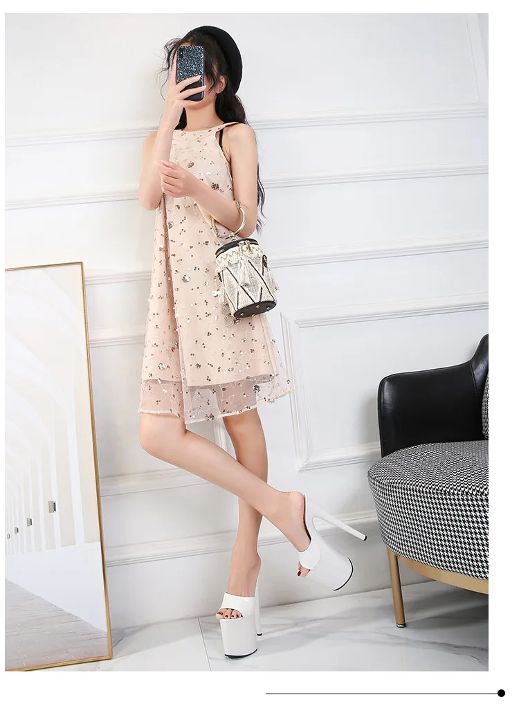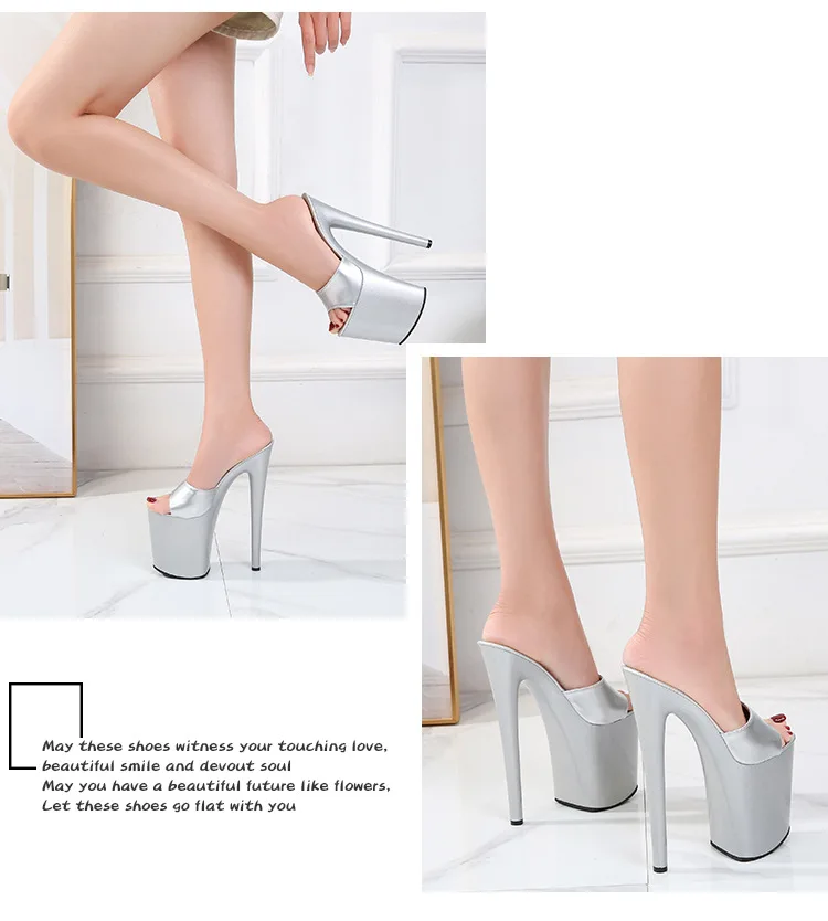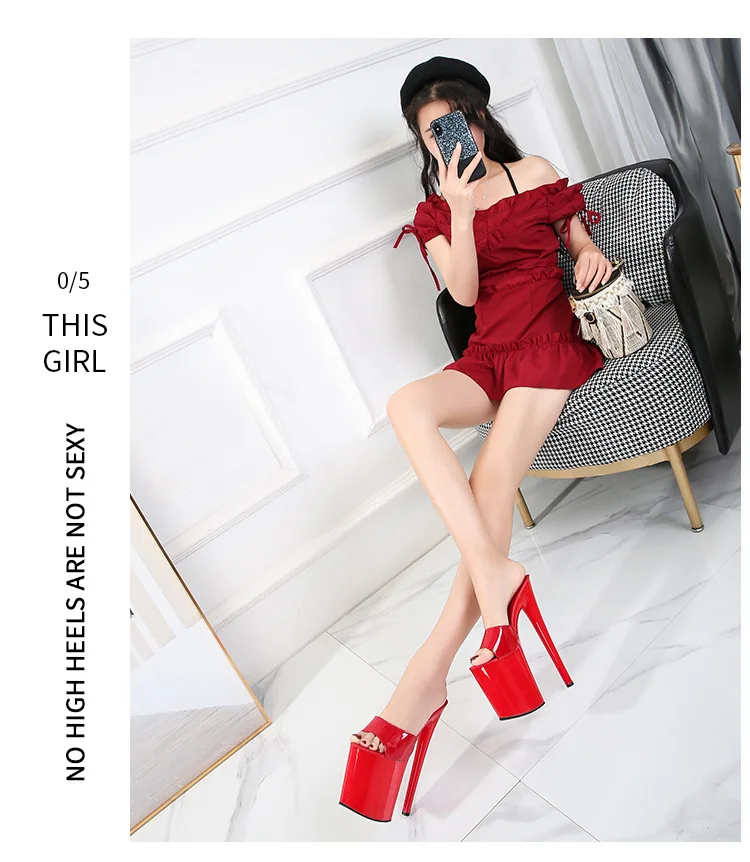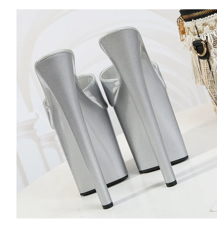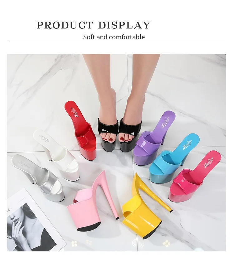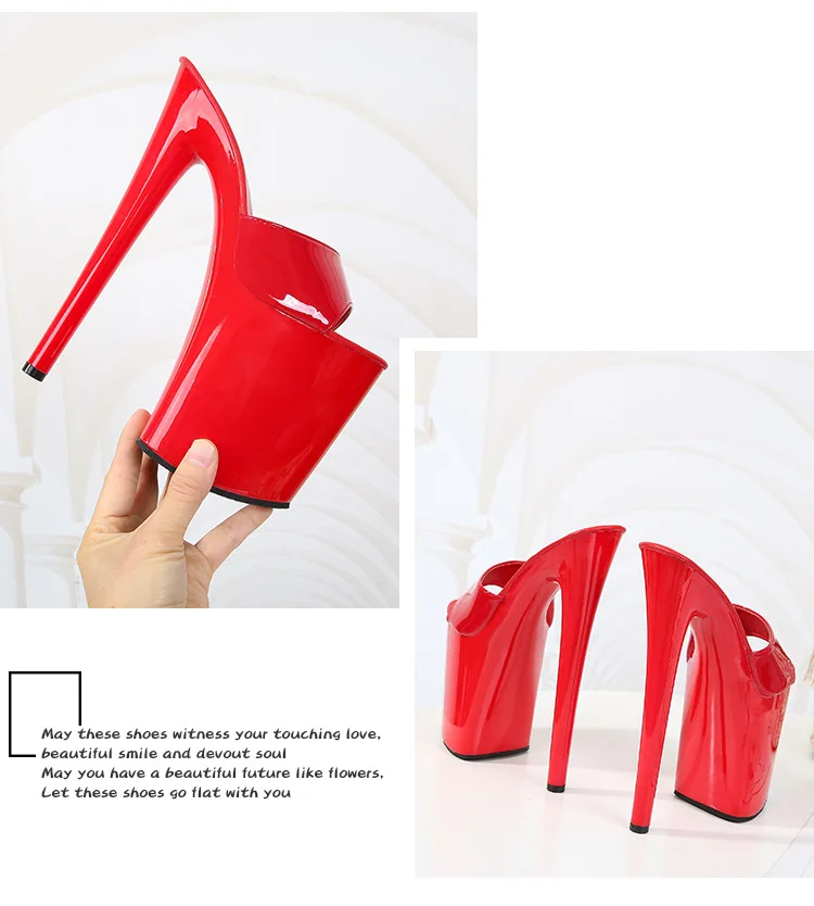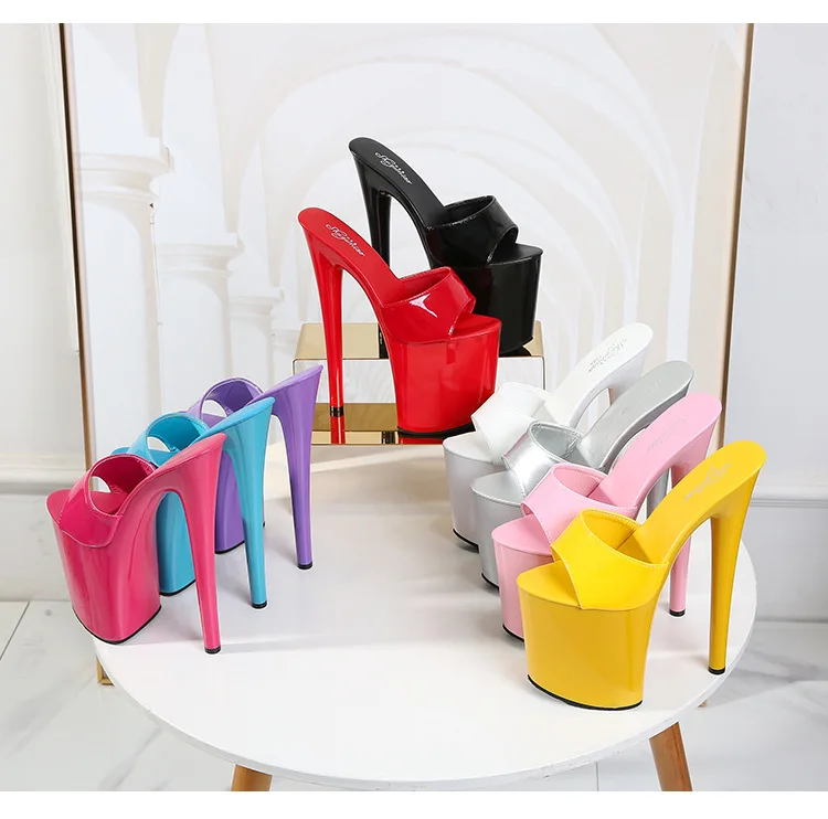 Summer PU Patent Leather Slipper Women Outside Slippers Women Shoes High Heels 20CM Platform Sexy Slippers Nightclub Party Shoes