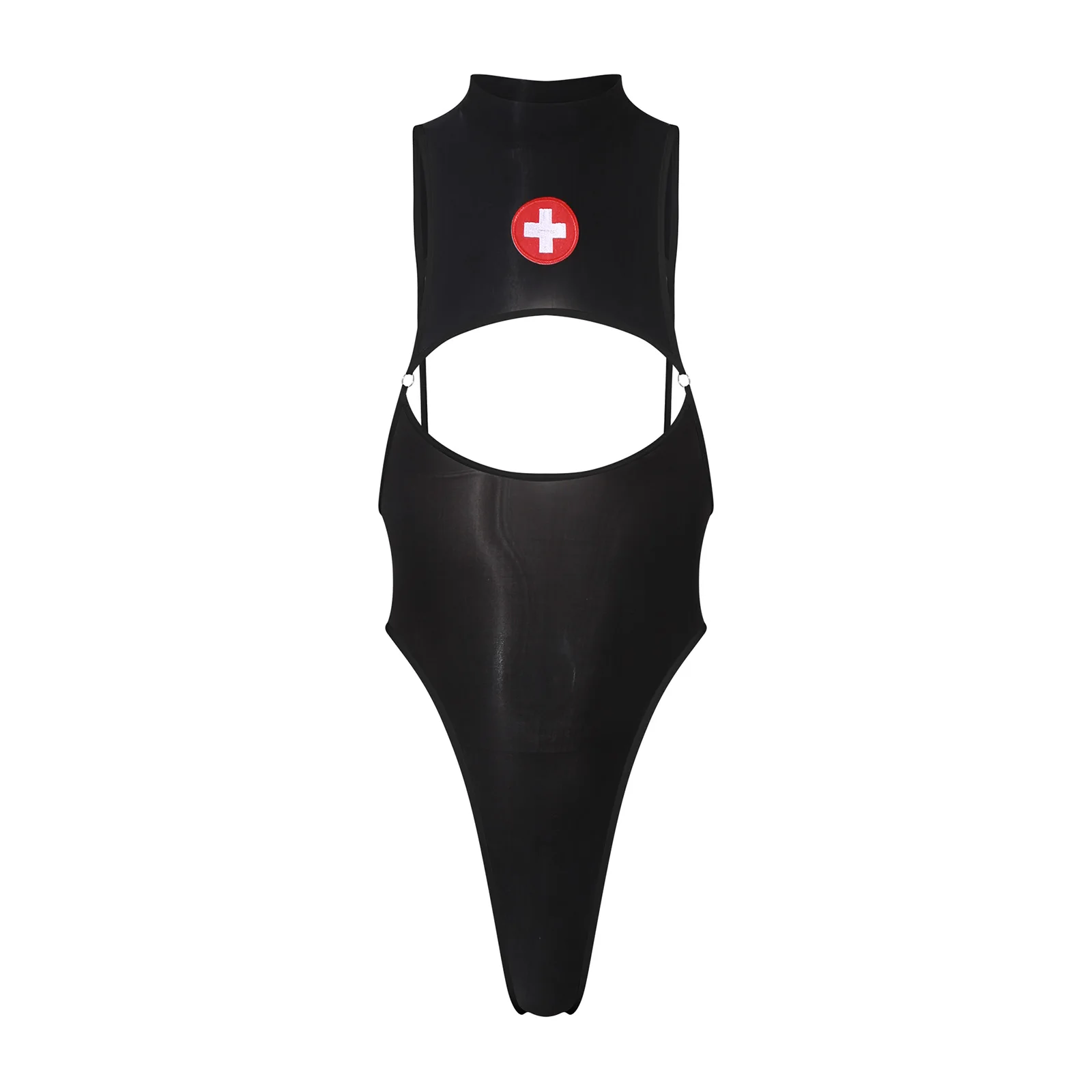 Womens Sexy Allure Nurse Cosplay Costume Turtleneck Backless Hollow Out See Thro